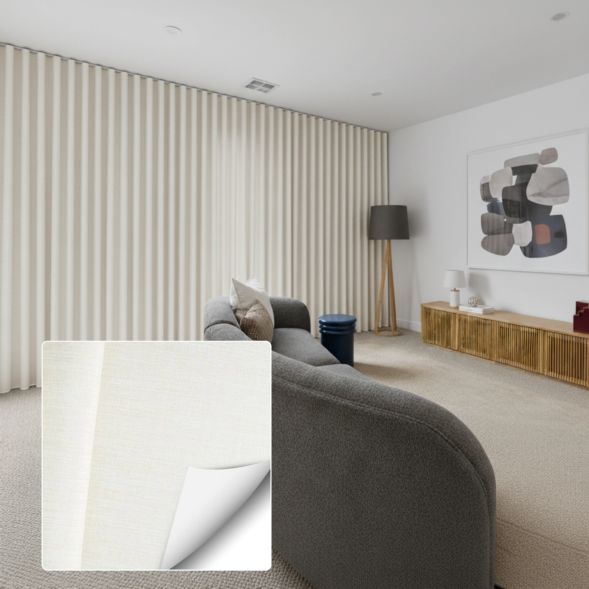 To keep your Alaska Sand Blockout Curtain looking its best, gently vacuum regularly to remove dust and debris. When spot cleaning is required, always test on a non-exposed area first and avoid excessive rubbing or abrasion to maintain the fabric’s finish and blockout performance.
