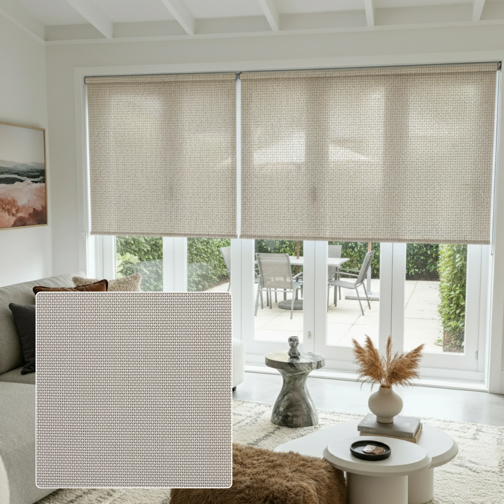 Aventus White Linen Sunscreen Linked Roller Blind