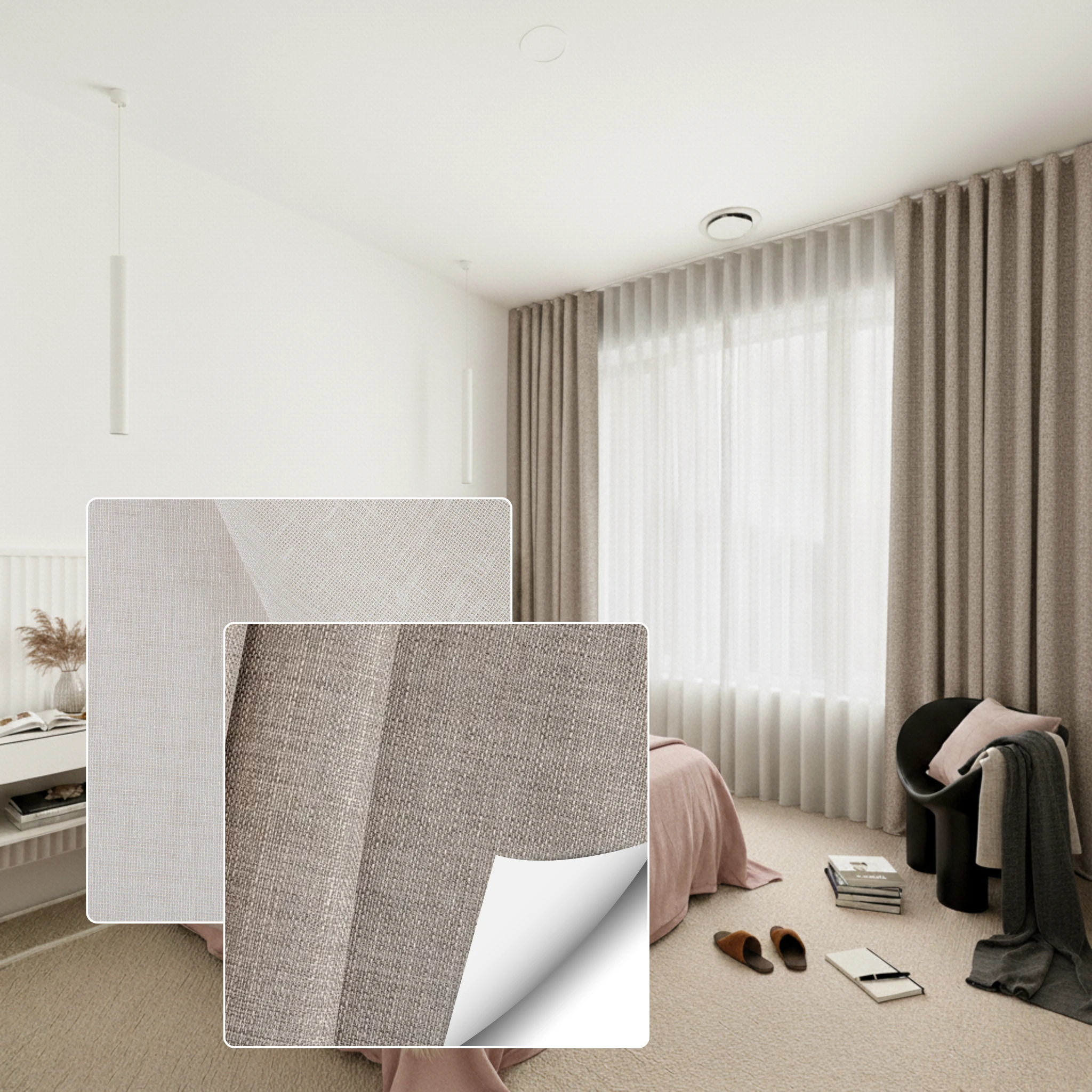 Double curtains give you total flexibility across the day and night. During the day you can use the Bali Blush sheer layer to brighten the room while still softening glare and giving daytime privacy. At night you close the Belmore Taupe blockout layer for full privacy stronger insulation and a darker space for better sleep. If you want one window solution that is both decorative and practical this pairing is the best of both worlds.