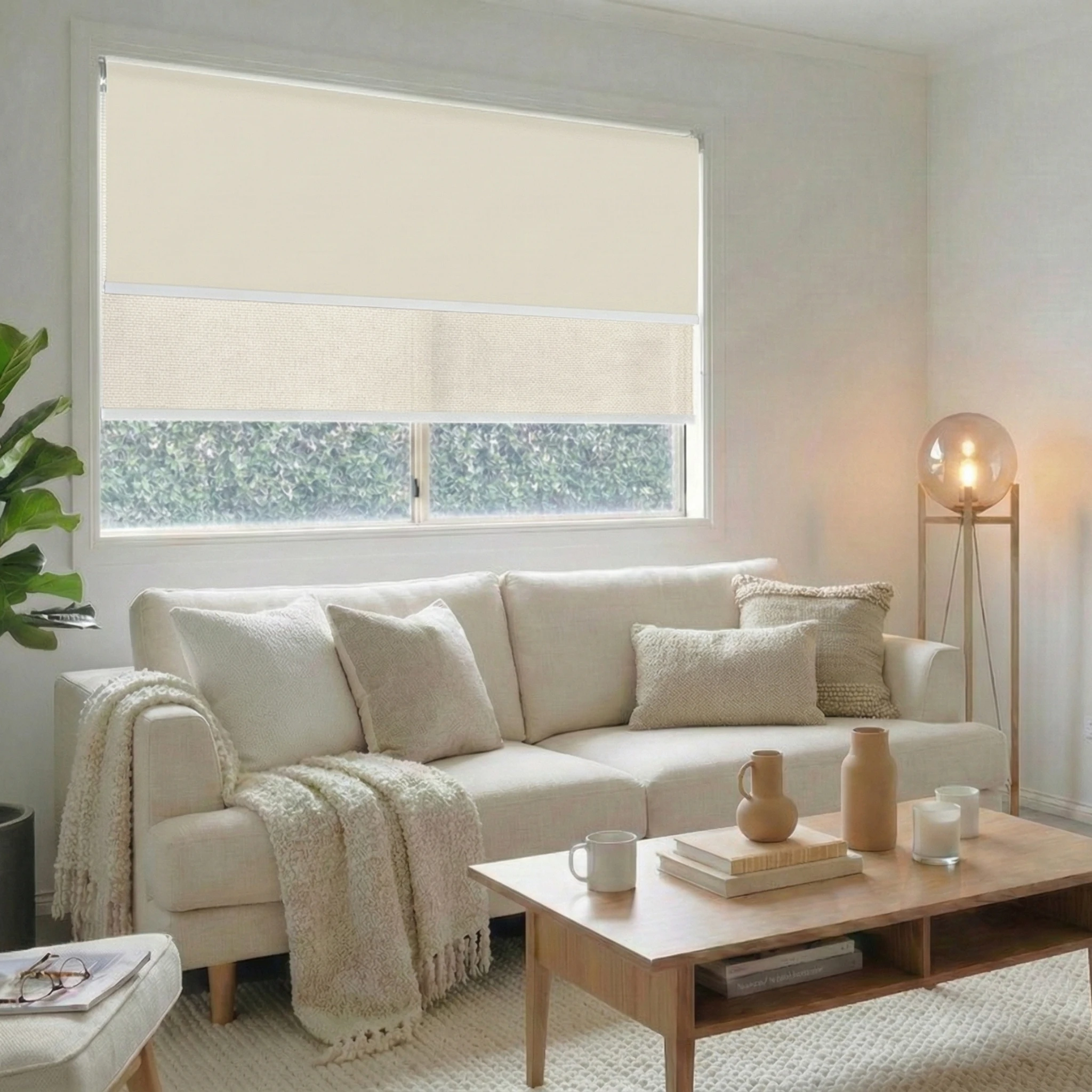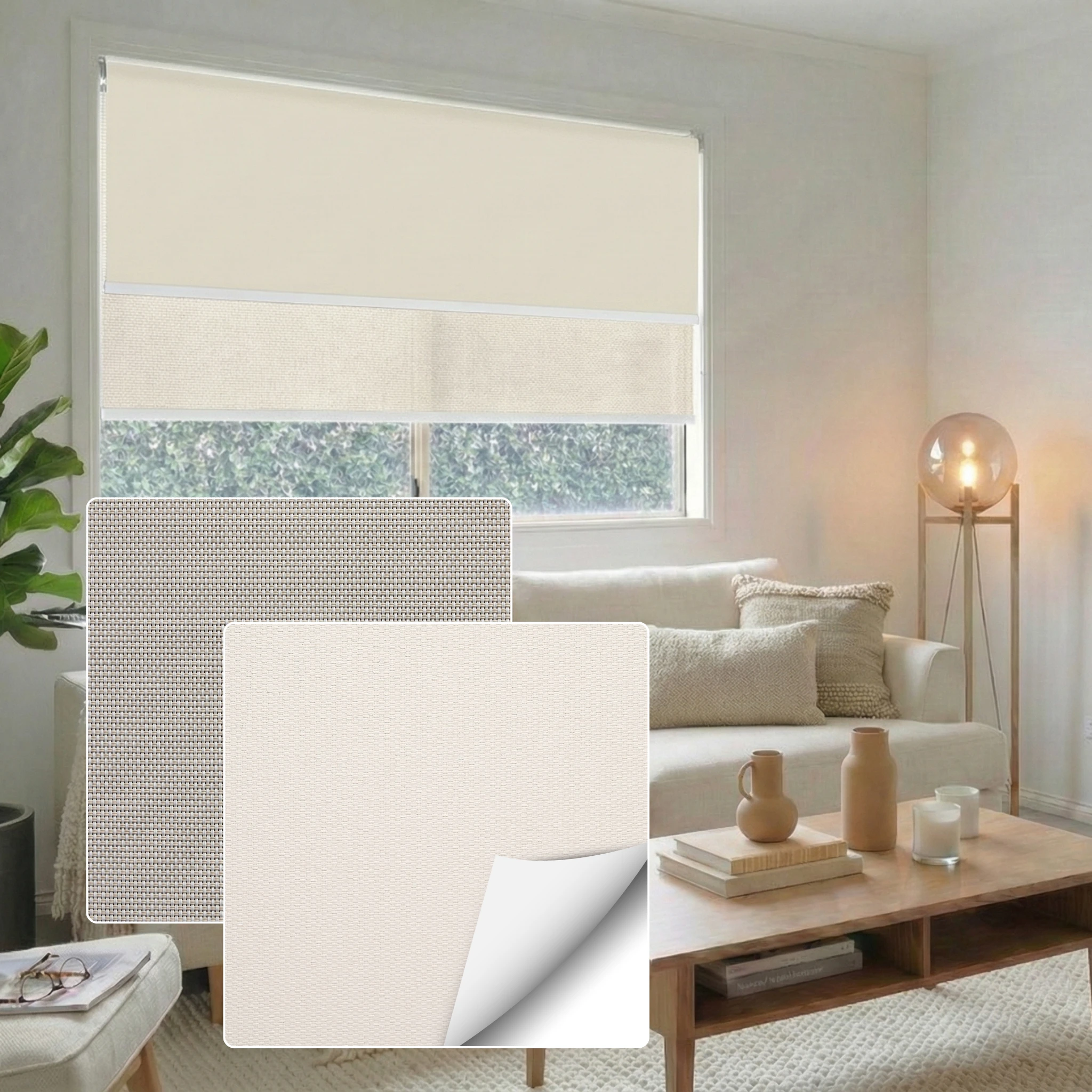 Bali Blush Blockout + Aventus White Linen Sunscreen Double Roller Blind