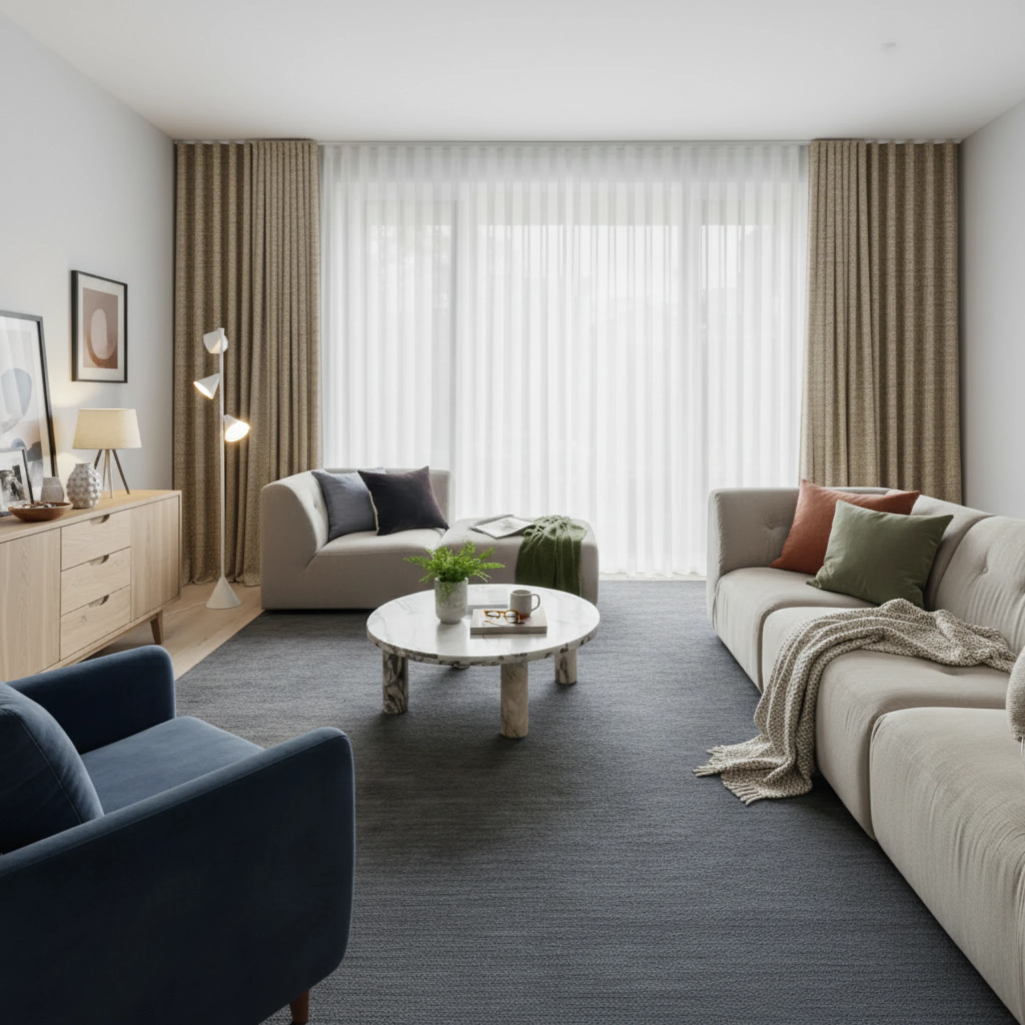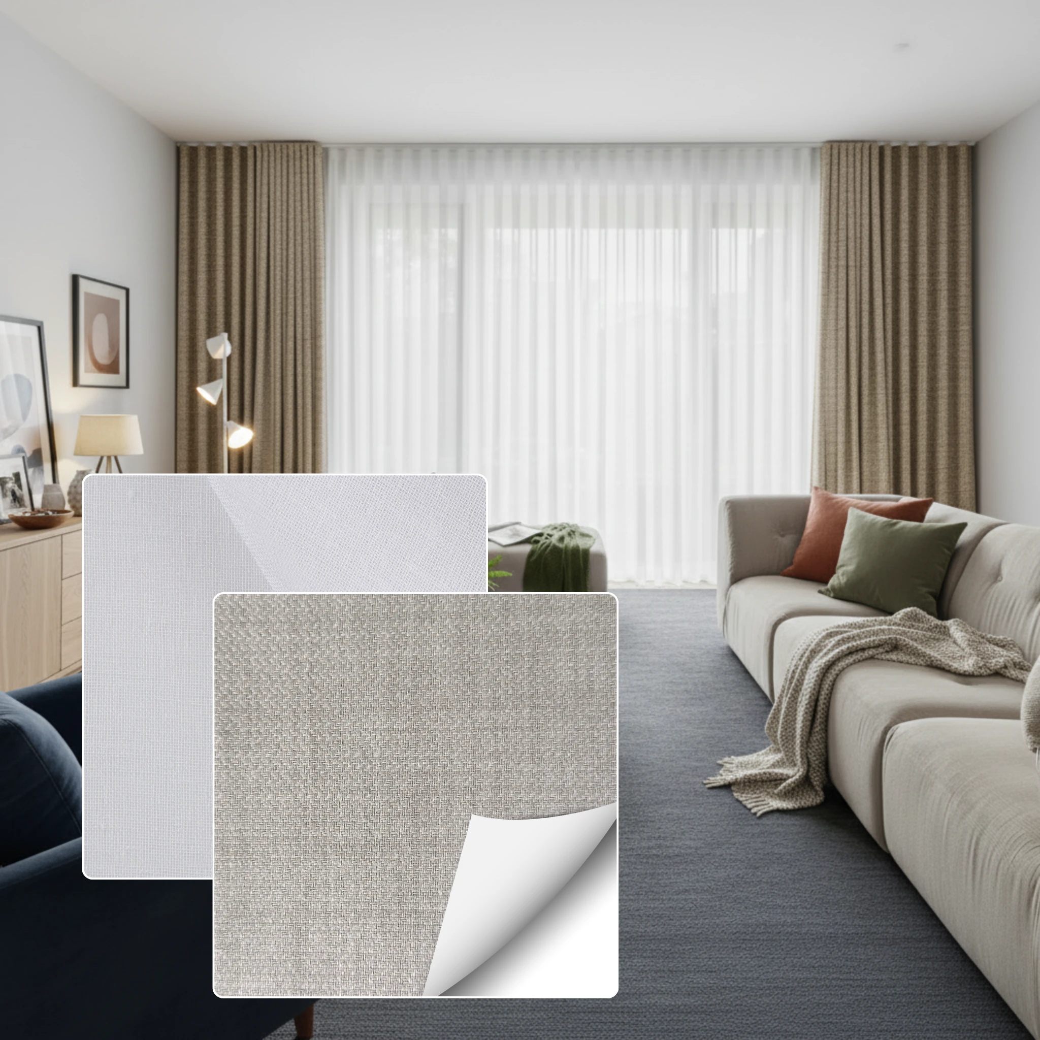 Double curtains give you total flexibility across the day and night. During the day you can use the Bali Chalk sheer layer to brighten the room while still softening glare and giving daytime privacy. At night you close the Soleil Buff blockout layer for full privacy stronger insulation and a darker space for better sleep. If you want one window solution that is both decorative and practical this pairing is the best of both worlds.