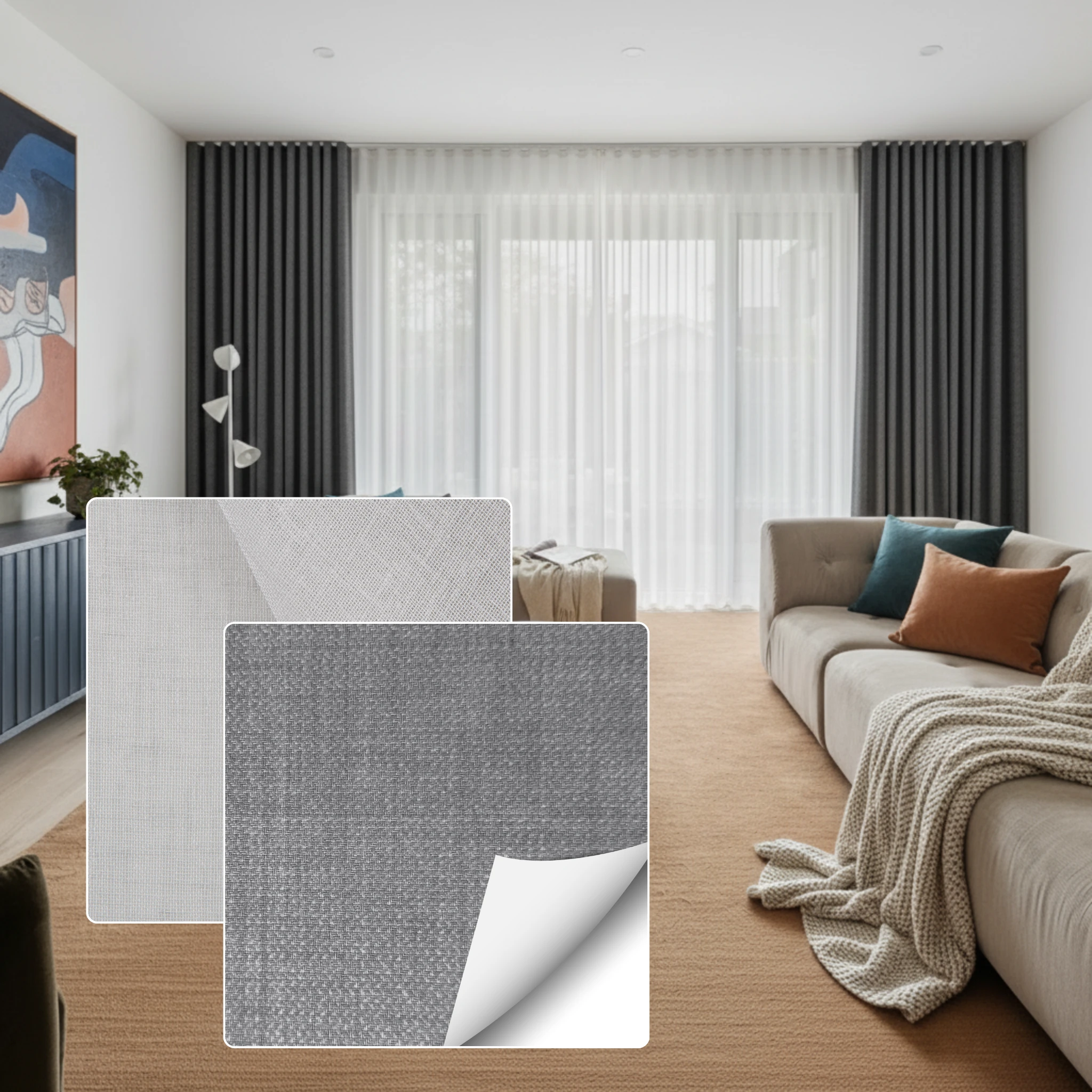 Double curtains give you total flexibility across the day and night. During the day you can use the Bali Cloud sheer layer to brighten the room while still softening glare and giving daytime privacy. At night you close the Soleil Cement blockout layer for full privacy stronger insulation and a darker space for better sleep. If you want one window solution that is both decorative and practical this pairing is the best of both worlds.