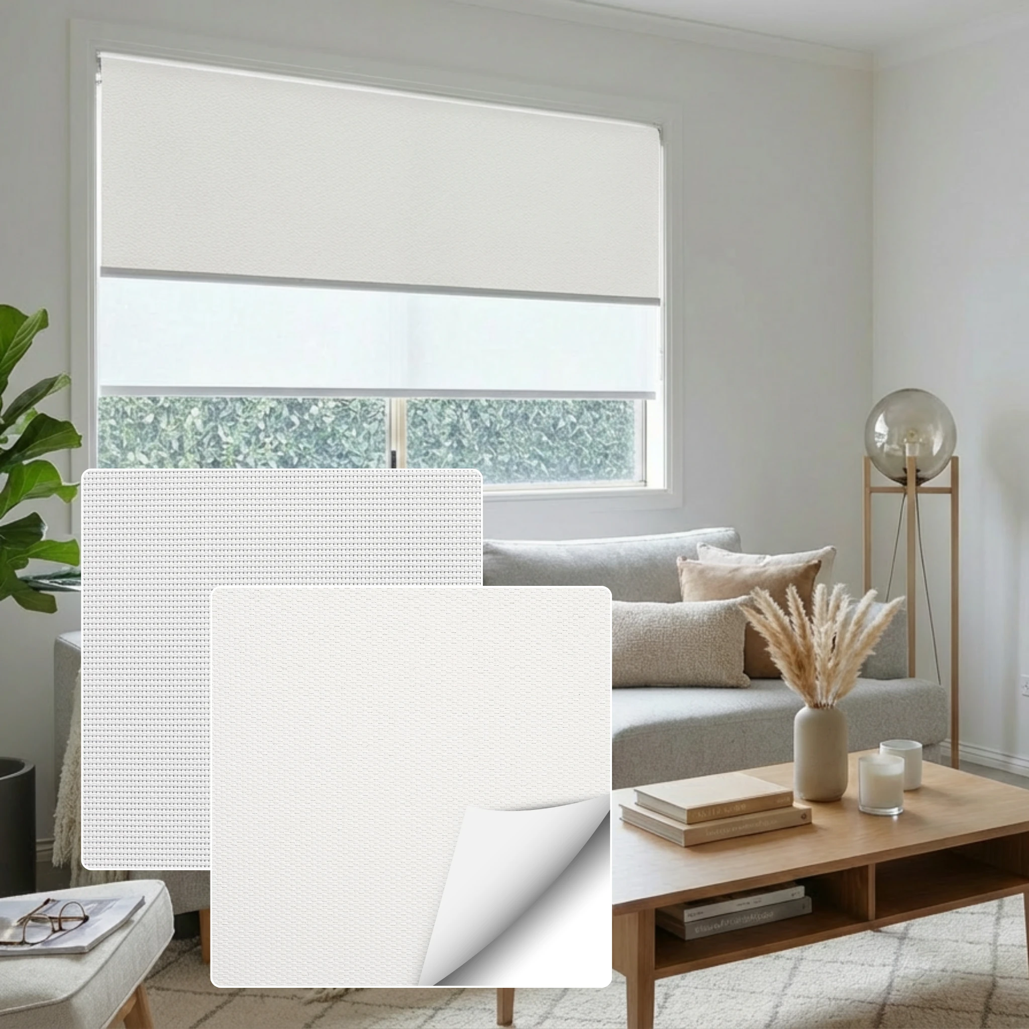 Bali Driftwood Blockout + Aventus Ice Sunscreen Double Roller Blind