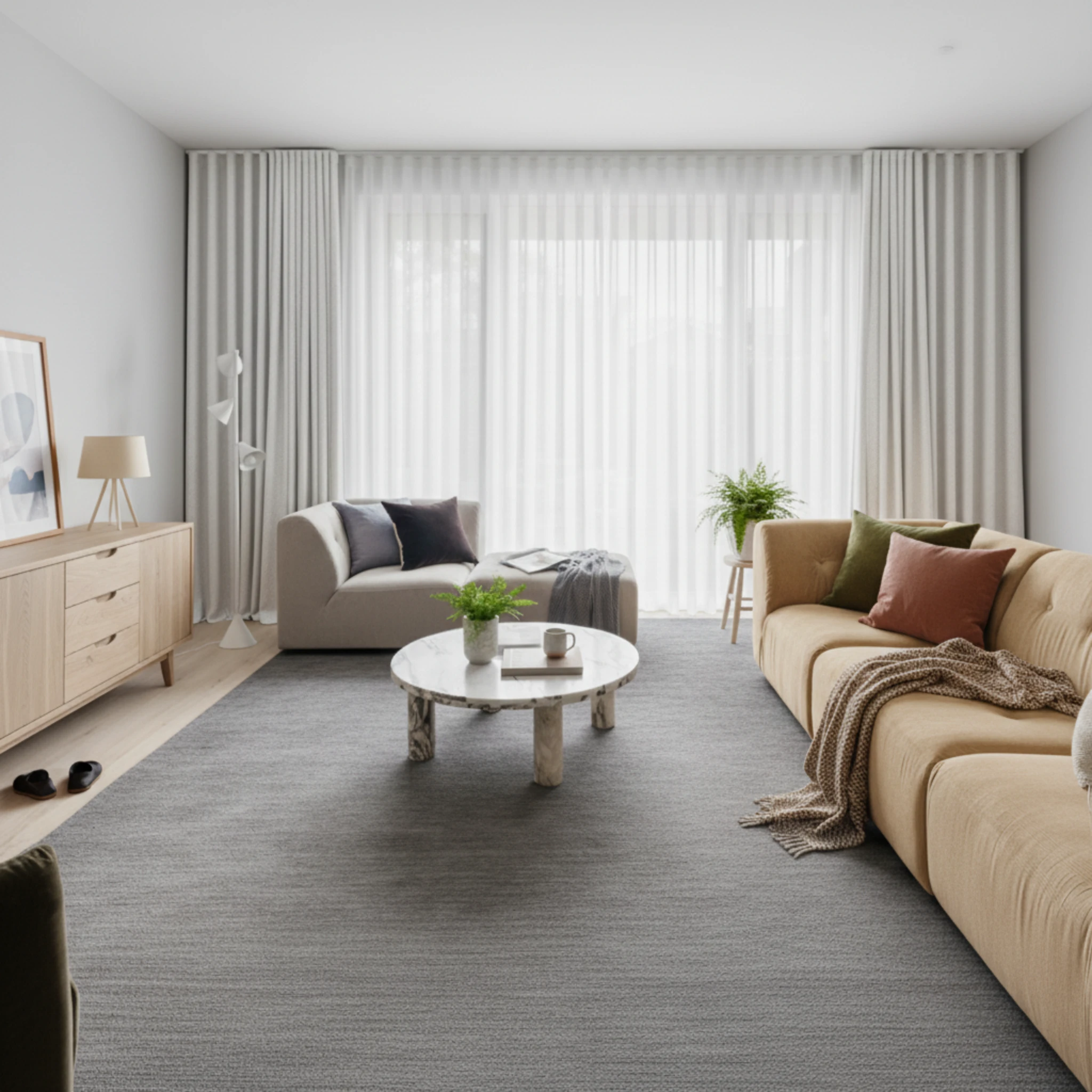 This is a double curtain system made with two layers installed on individual tracks. One layer features the Bali Pearl sheer curtain, designed to gently filter daylight, soften the space and provide comfortable daytime privacy. The other layer is the Soleil Pearl blockout curtain, which delivers night-time privacy, darkness and added insulation. Together, the two layers give you flexible light control and a beautifully layered finish that suits modern Australian homes.