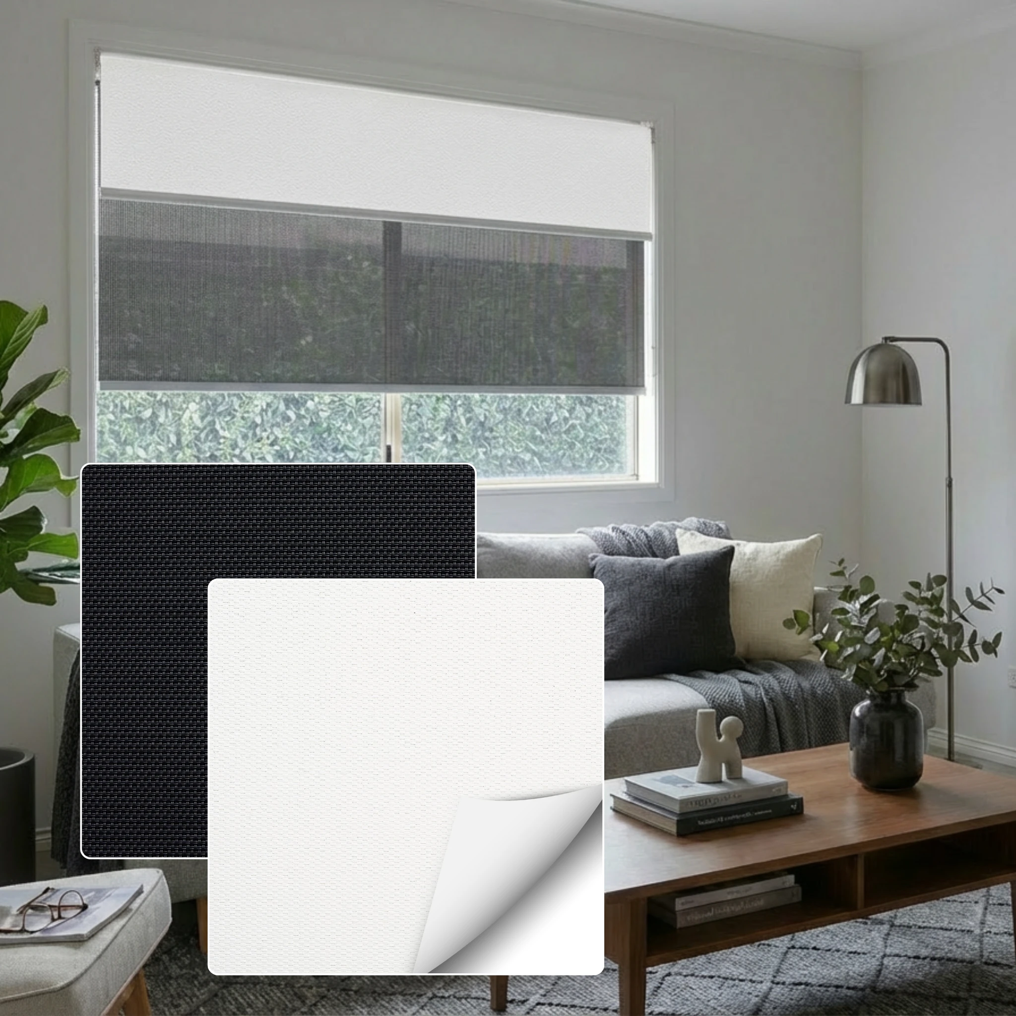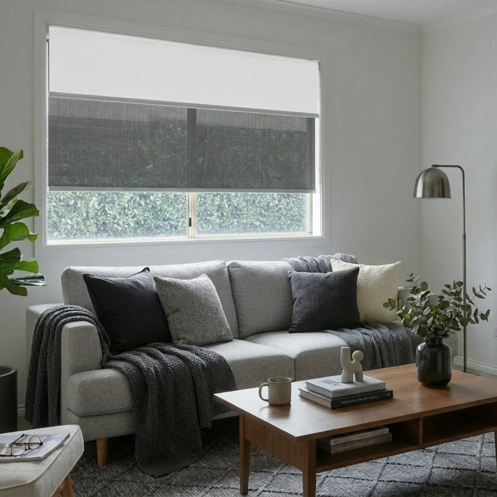 Bali Pearl Blockout + Aventus Charcoal Sunscreen Double Roller Blind
