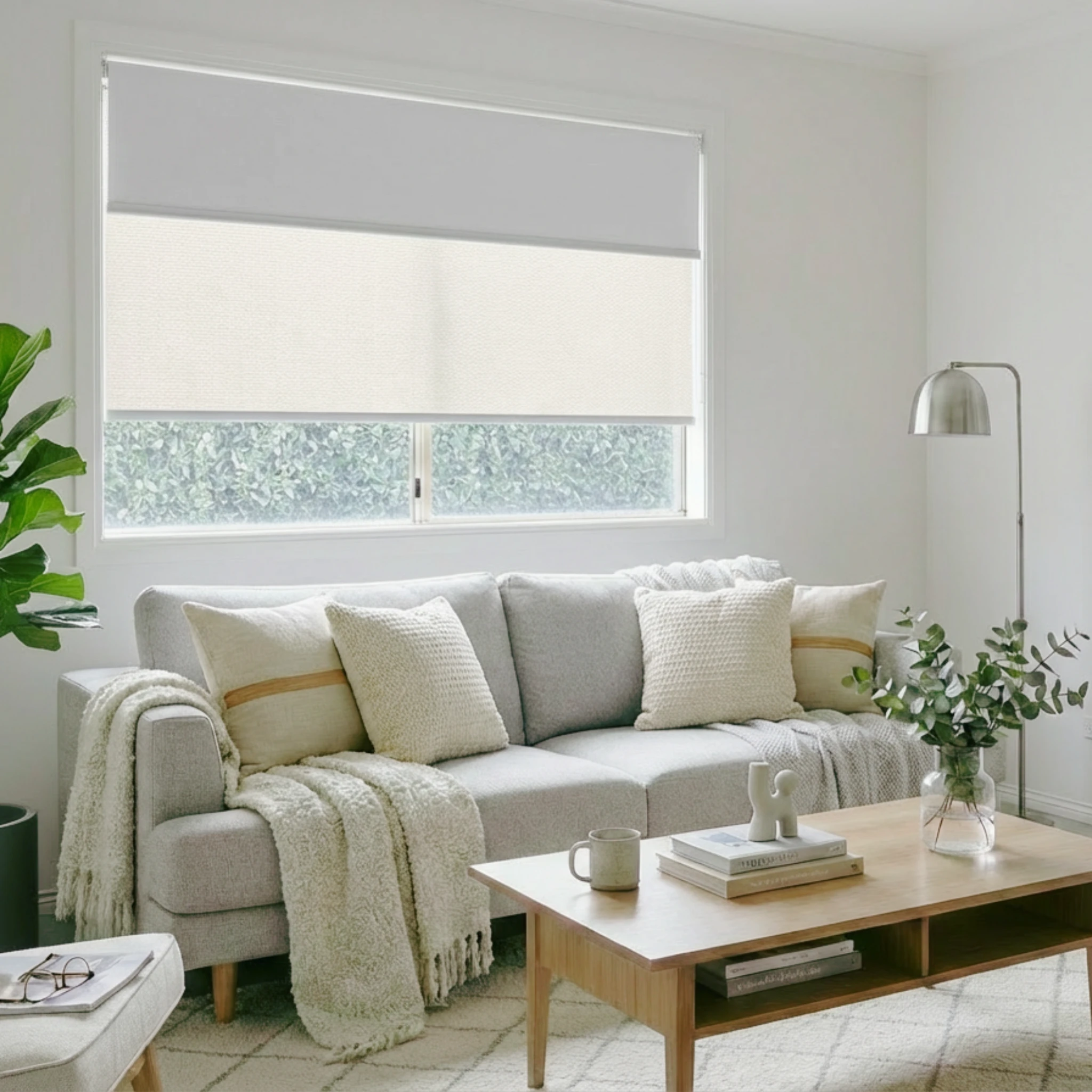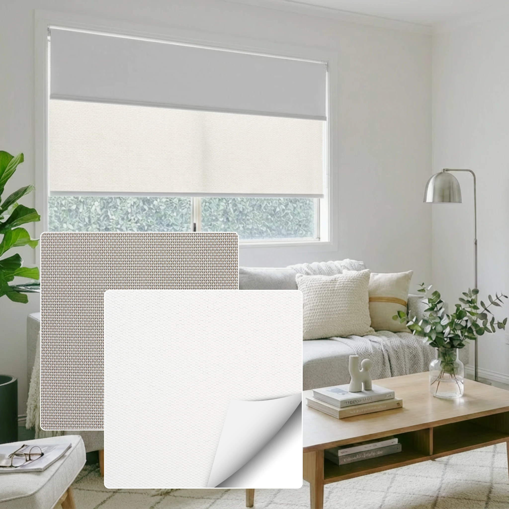Bali Pearl Blockout + Aventus White Linen Sunscreen Double Roller Blind