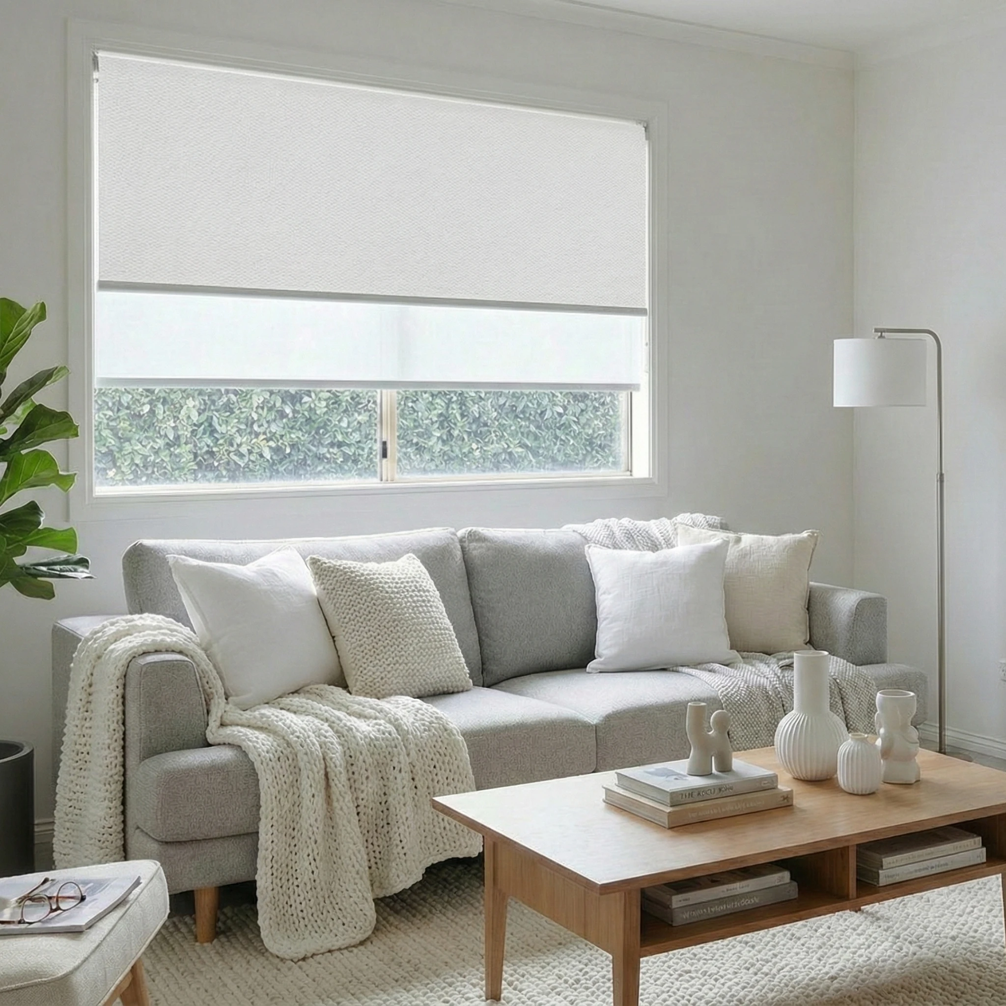Bali Pearl Blockout + Aventus White Sunscreen Double Roller Blind