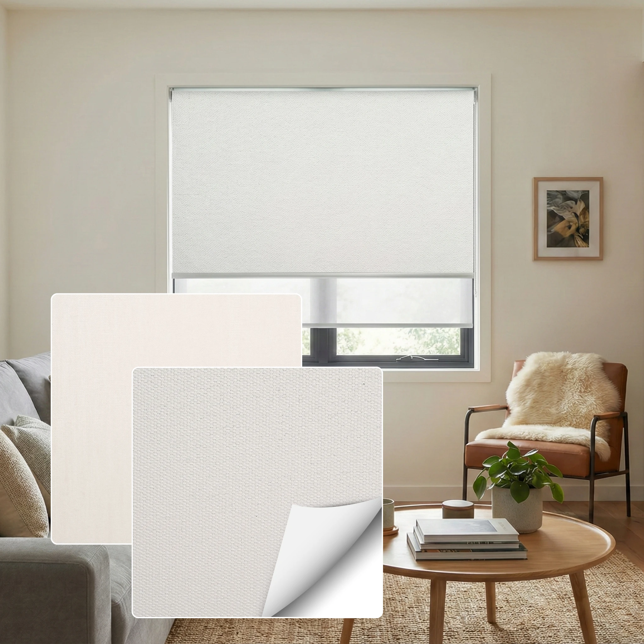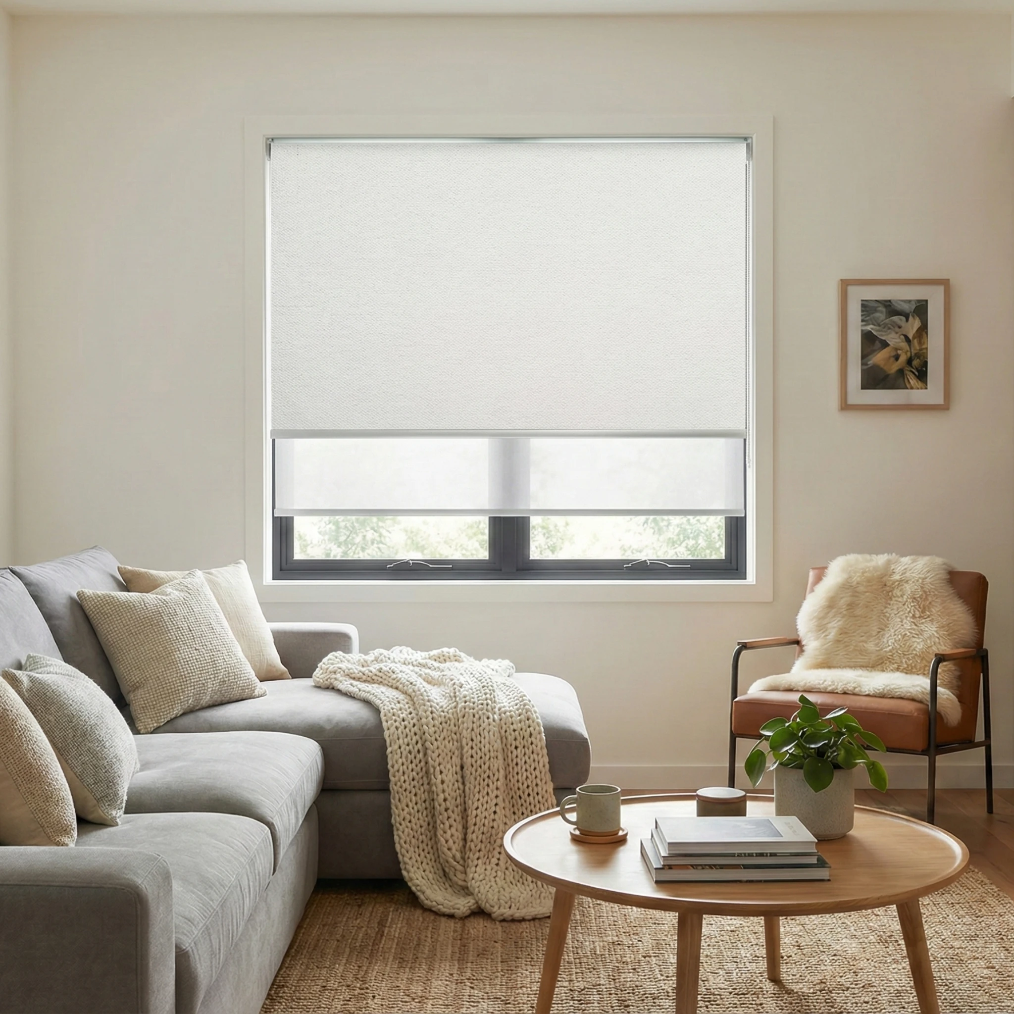 Bali Smoke Blockout + SB Woolamai Driftwood Sunscreen Double Roller Blind