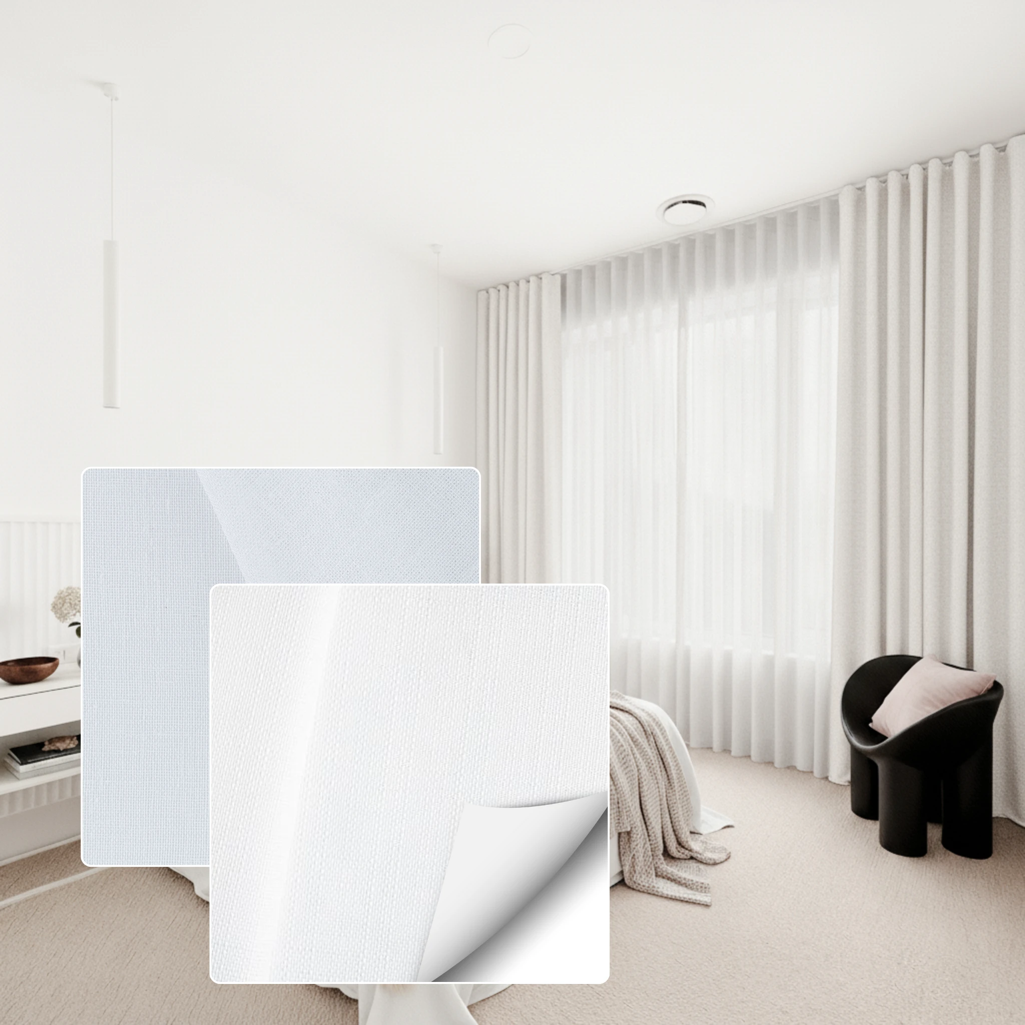 Double curtains give you total flexibility across the day and night. During the day you can use the Bali Snow sheer layer to brighten the room while still softening glare and giving daytime privacy. At night you close the Belmore Chalk blockout layer for full privacy stronger insulation and a darker space for better sleep. If you want one window solution that is both decorative and practical this pairing is the best of both worlds.