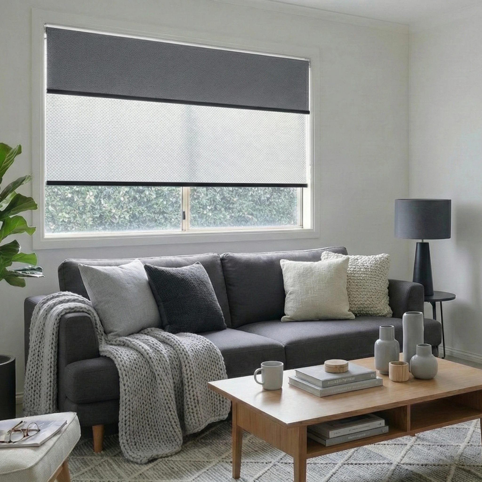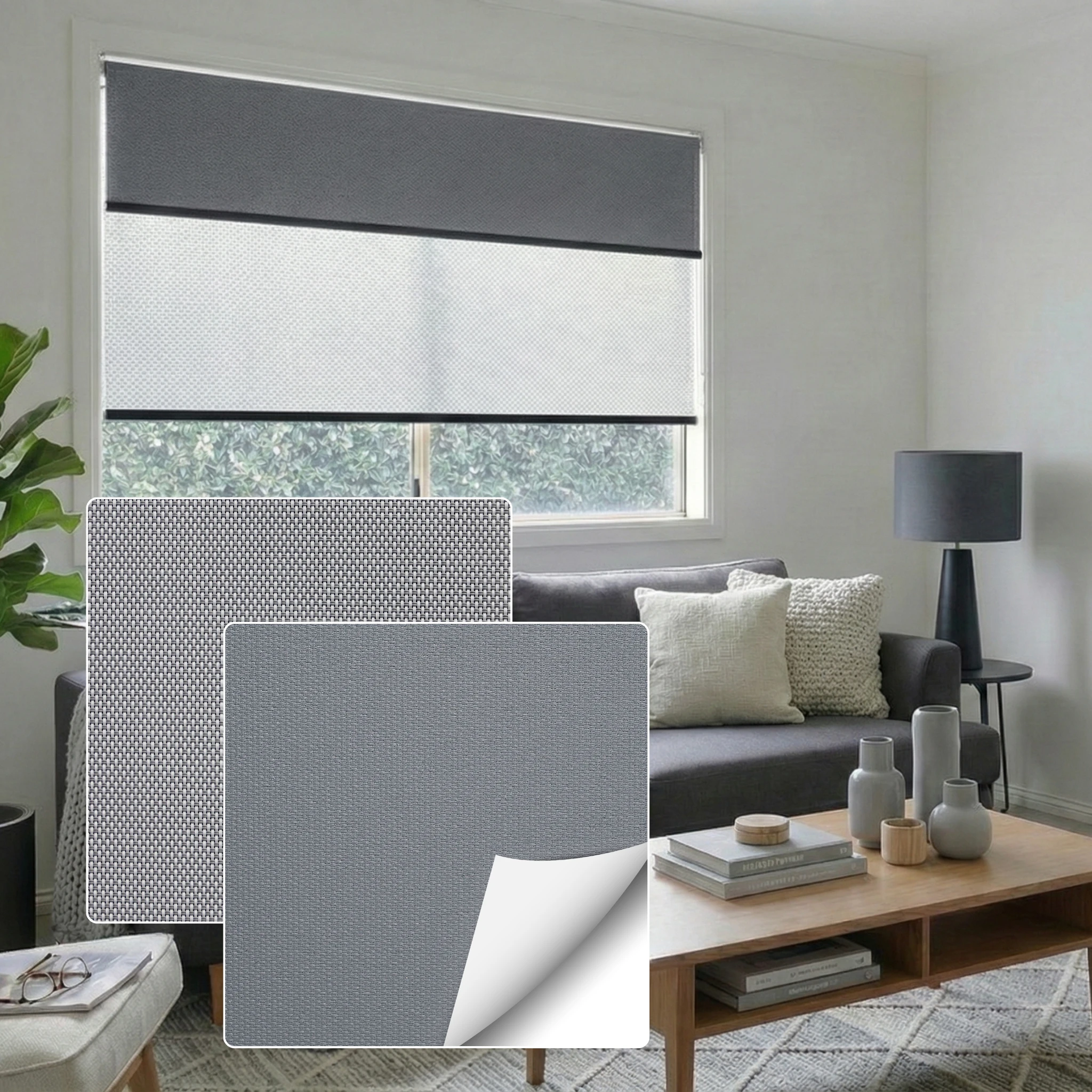 Bali Storm Blockout + Aventus White Grey Sunscreen Double Roller Blind