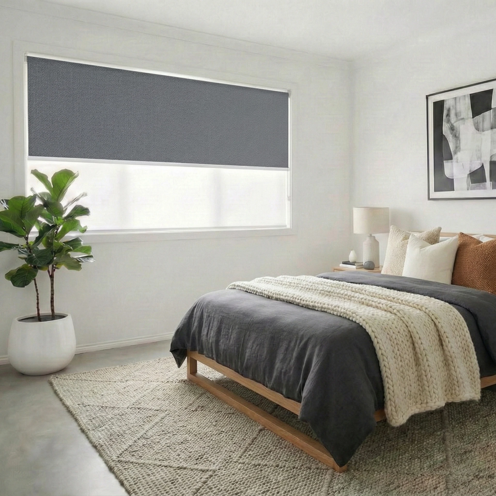 Bali Storm Blockout + Palm Beach Melody Light Filter Double Roller Blind