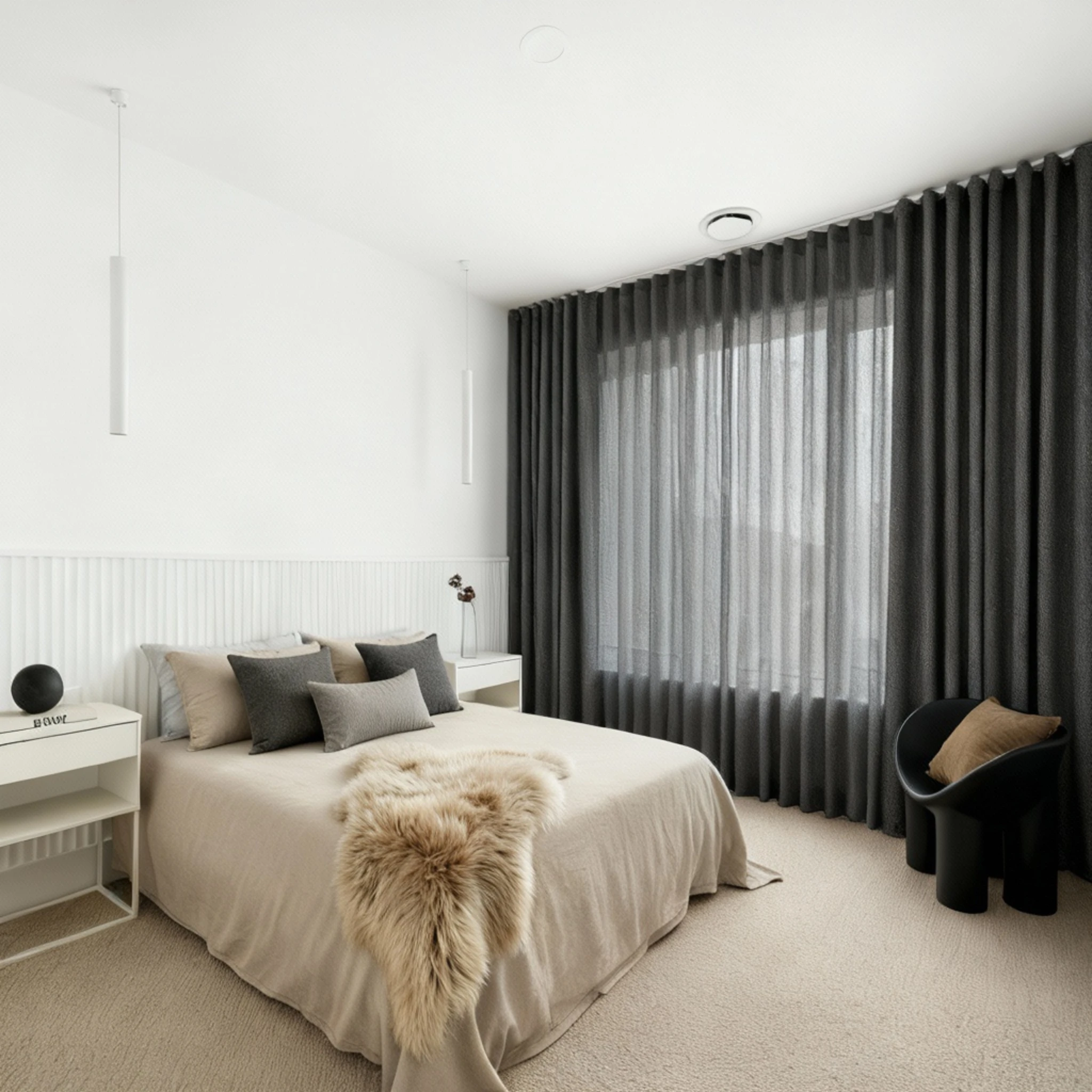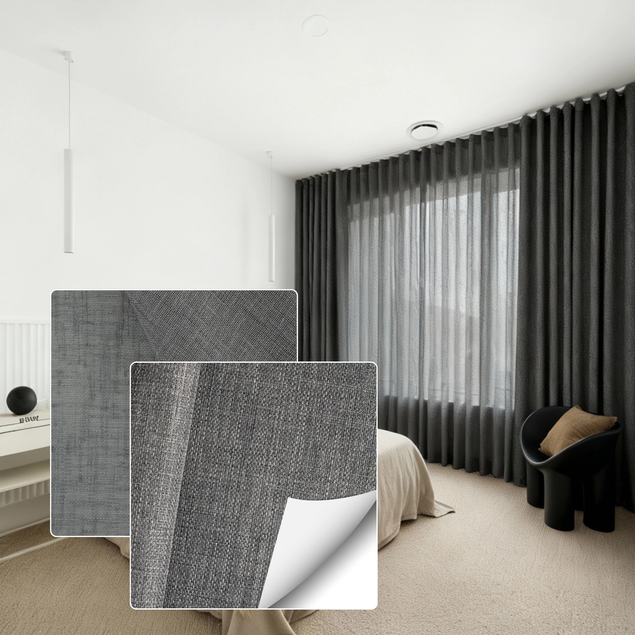 Double curtains give you total flexibility across the day and night. During the day you can use the Bali Thunder sheer layer to brighten the room while still softening glare and giving daytime privacy. At night you close the Belmore Asphalt blockout layer for full privacy stronger insulation and a darker space for better sleep. If you want one window solution that is both decorative and practical this pairing is the best of both worlds.