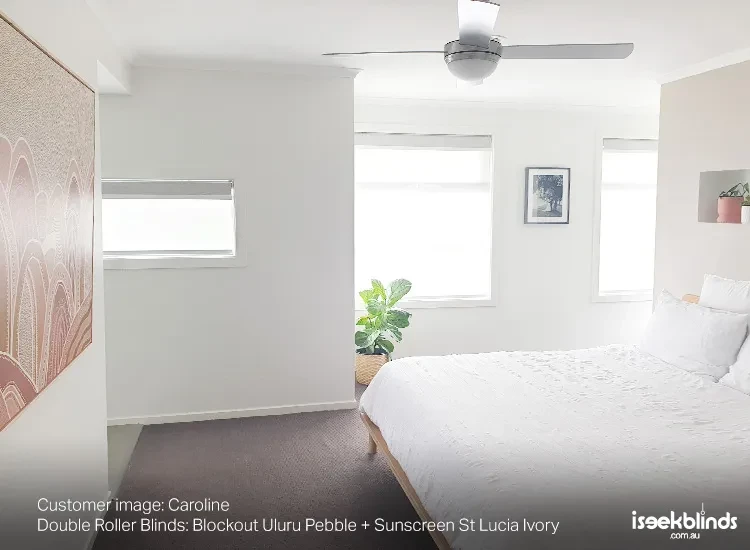 Blockout roller blinds will provide you with a darkened room while taking up minimal space, making them the perfect choice for a minimalist style. Bedroom roller blinds can be single roller blinds that when open, allow full visibility and sunlight to enter during the day. Double roller blinds in bedrooms offer the flexibility of two blinds so you can maintain daytime privacy yet still receive natural light during the daytime.