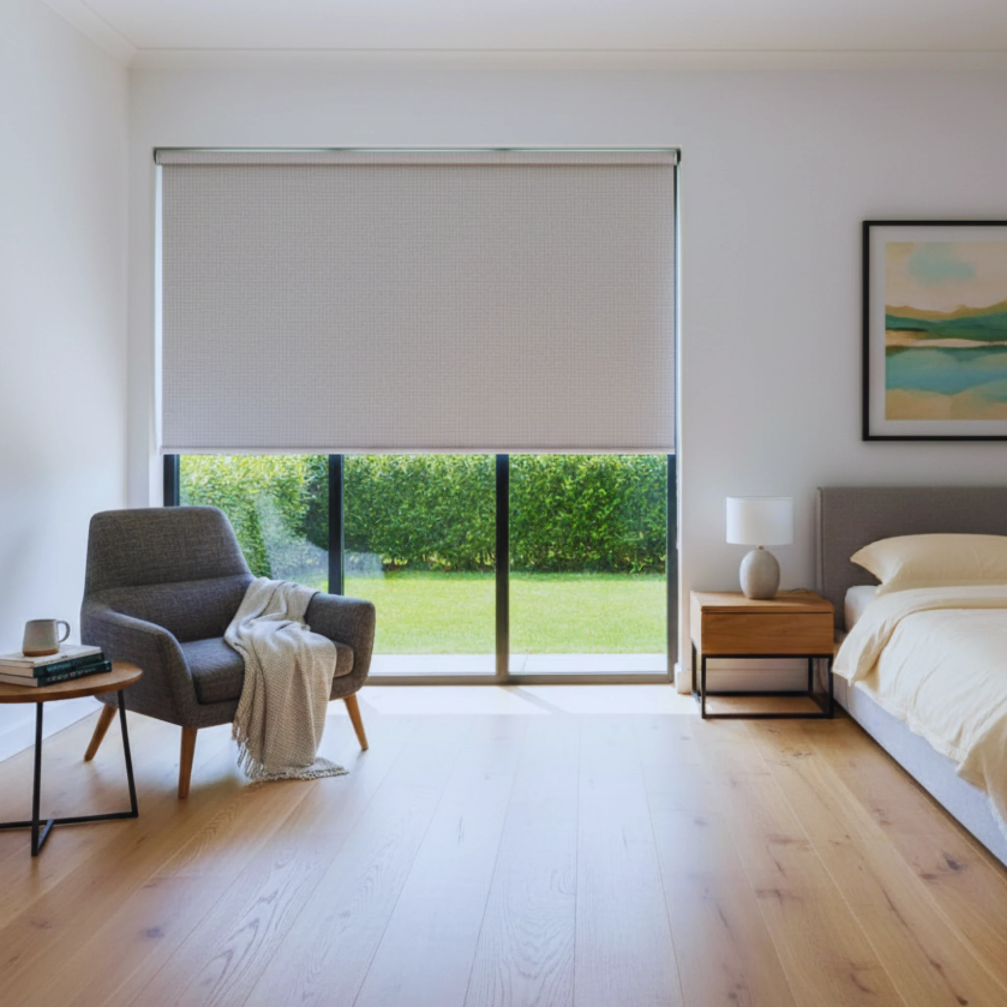 I am thrilled with my new motorised roller blinds. The fabric (Linesque blockout in Dove) has just the right amount of t...