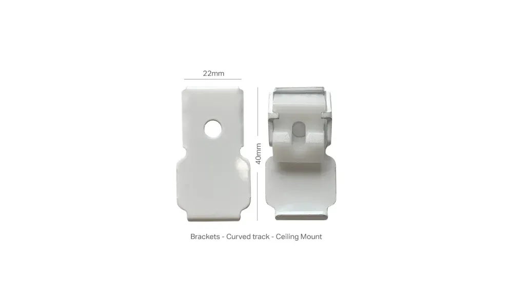 Spare bracket for your curved ceiling mount track. Available in White only. Dimensions: 40mm x 22mm.