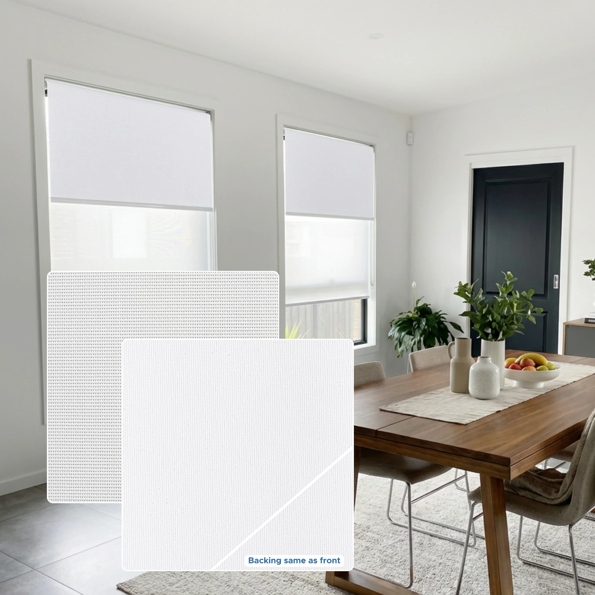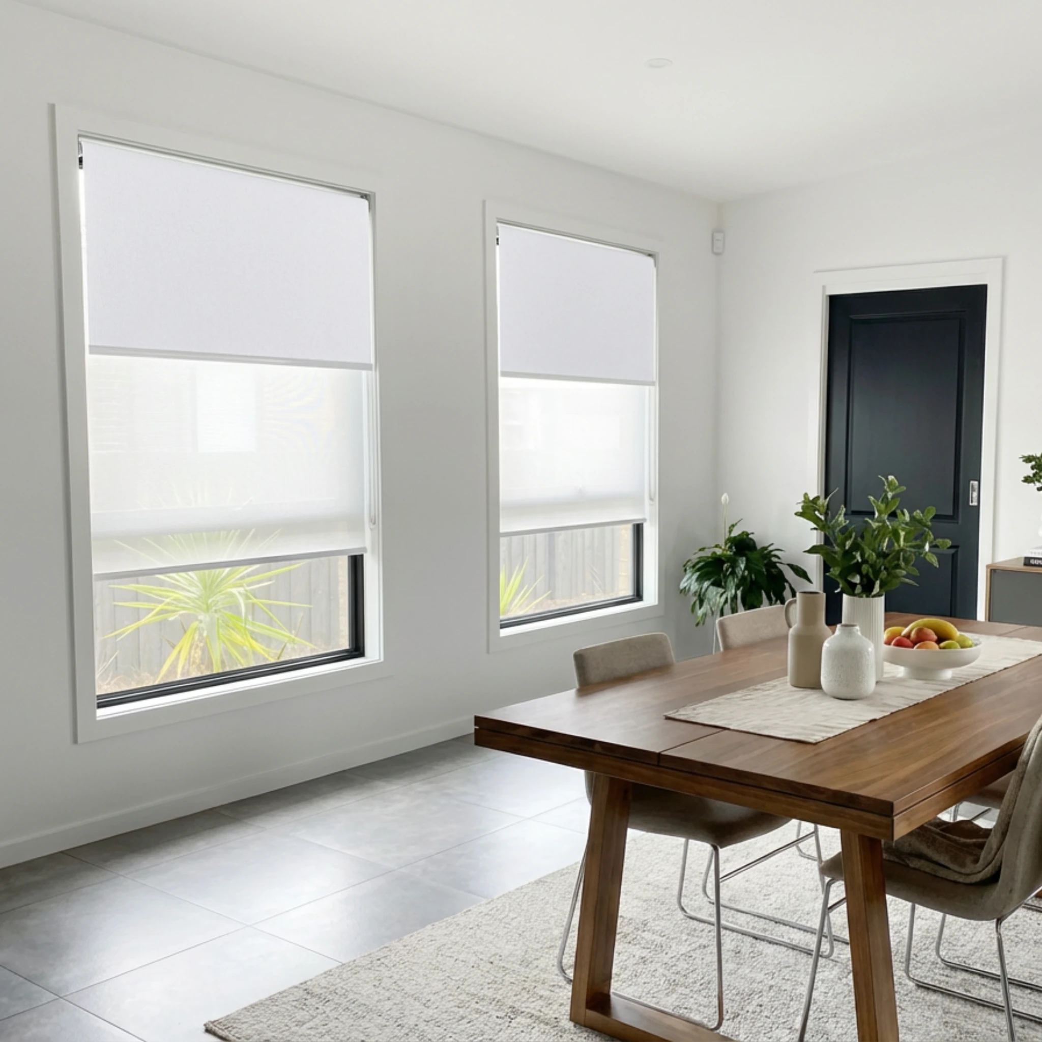 Charlotte Cool White Blockout + Aventus Ice Sunscreen Double Roller Blind