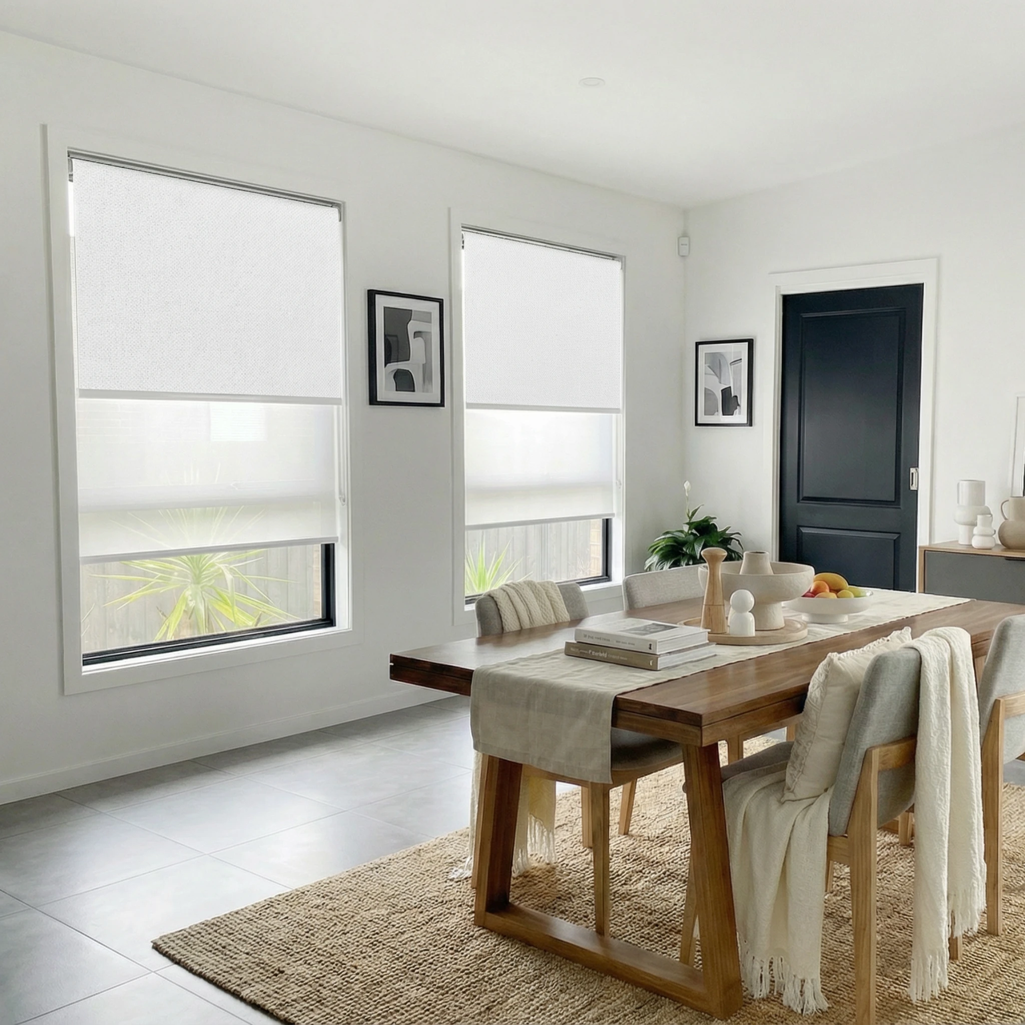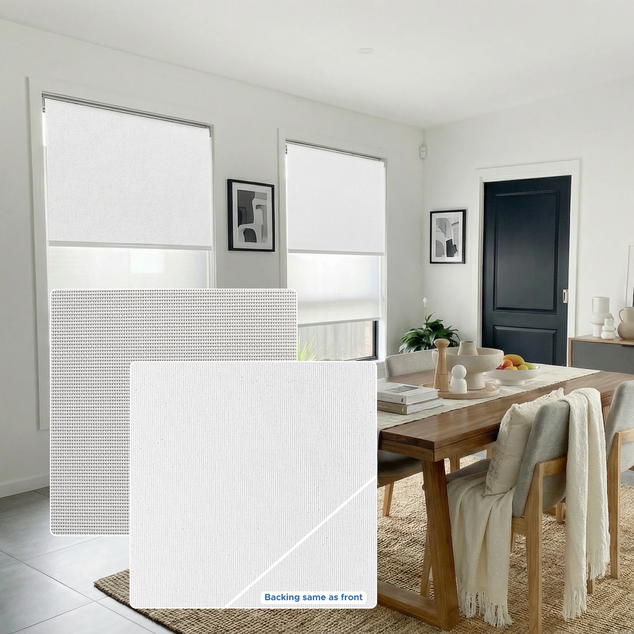 Charlotte Warm White Blockout + Aventus White Sunscreen Double Roller Blind