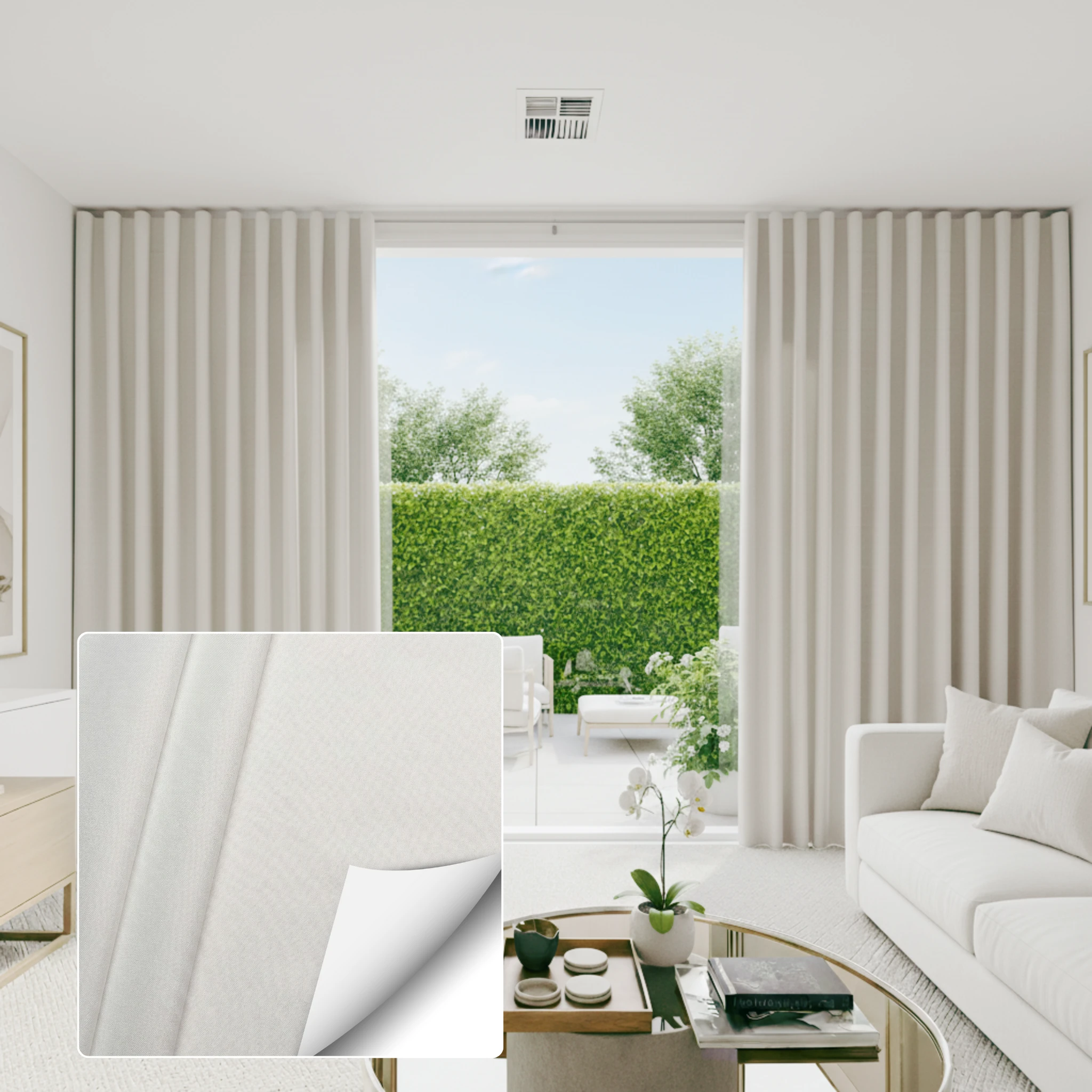 To keep your Epic Alabaster Blockout Curtain looking its best, gently vacuum regularly to remove dust and debris. When spot cleaning is required, always test on a non-exposed area first and avoid excessive rubbing or abrasion to maintain the fabric’s finish and blockout performance.