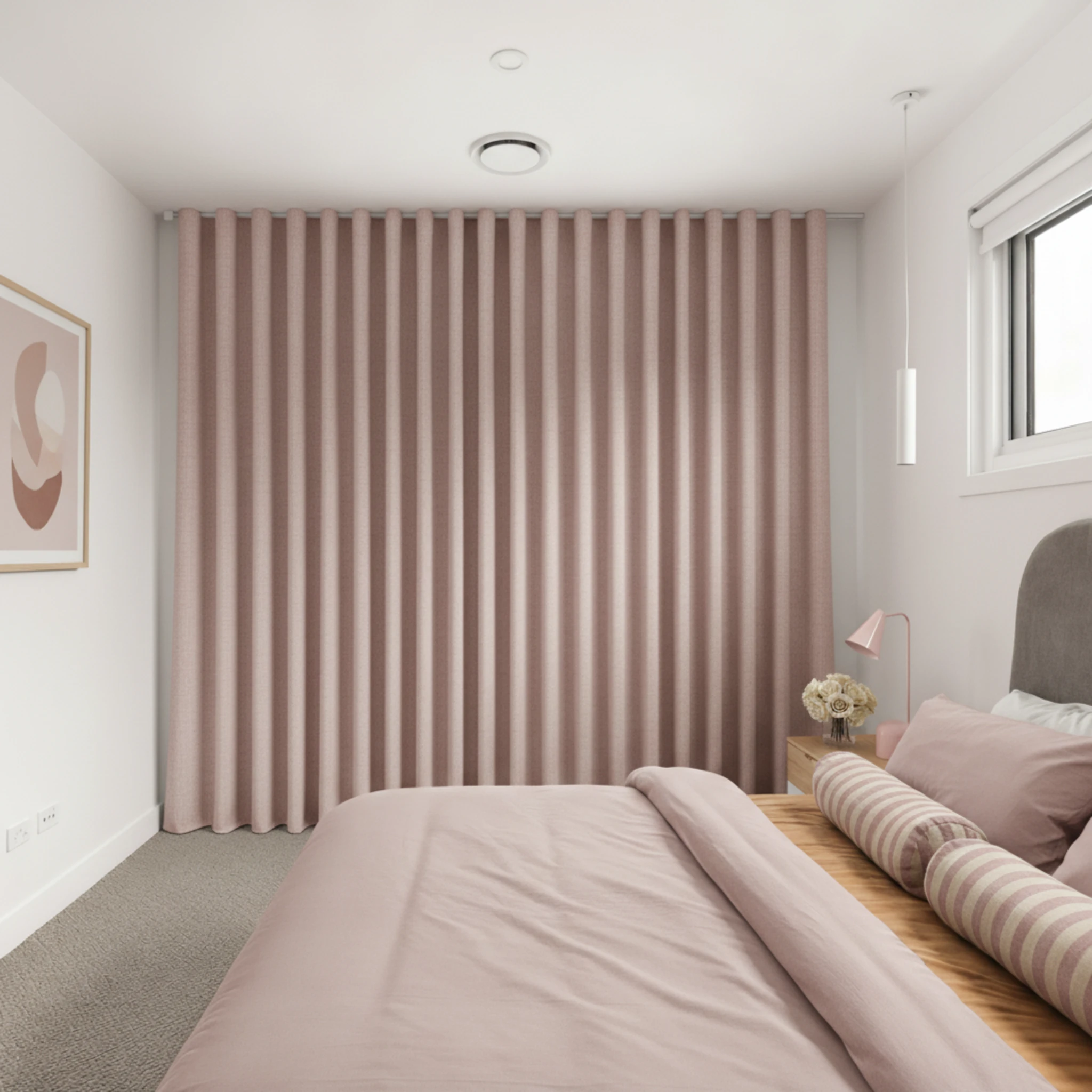 The Galaxy Dusk Blockout Curtain works beautifully in bedrooms, living rooms and media rooms. Its soft neutral tone complements a wide range of interior styles, from modern and contemporary to relaxed and classic spaces.