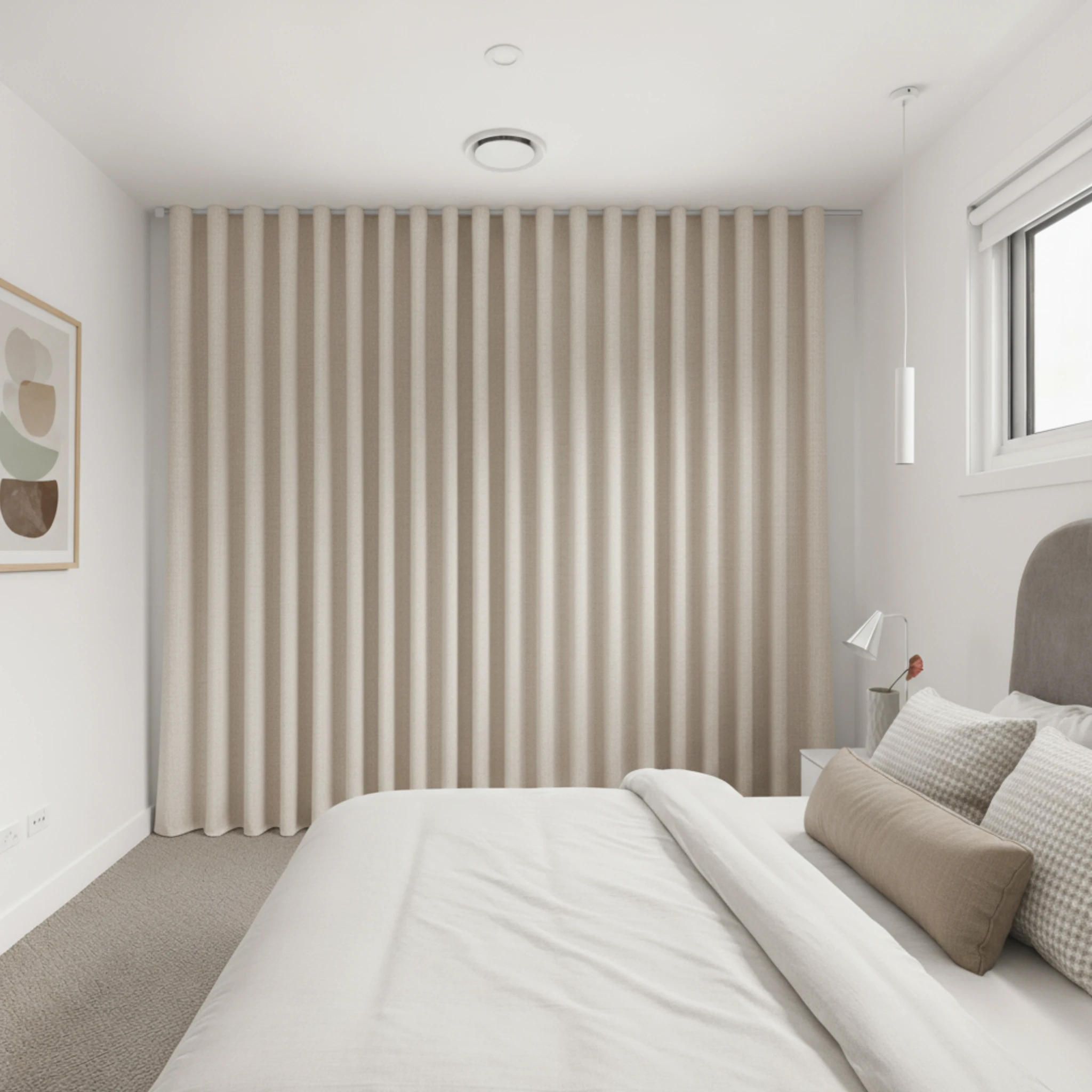 All our blockout curtains are made with a modern S-Fold (wave-fold) heading. This creates a smooth, continuous wave from top to bottom, delivering a clean, contemporary finish that suits any interior style.