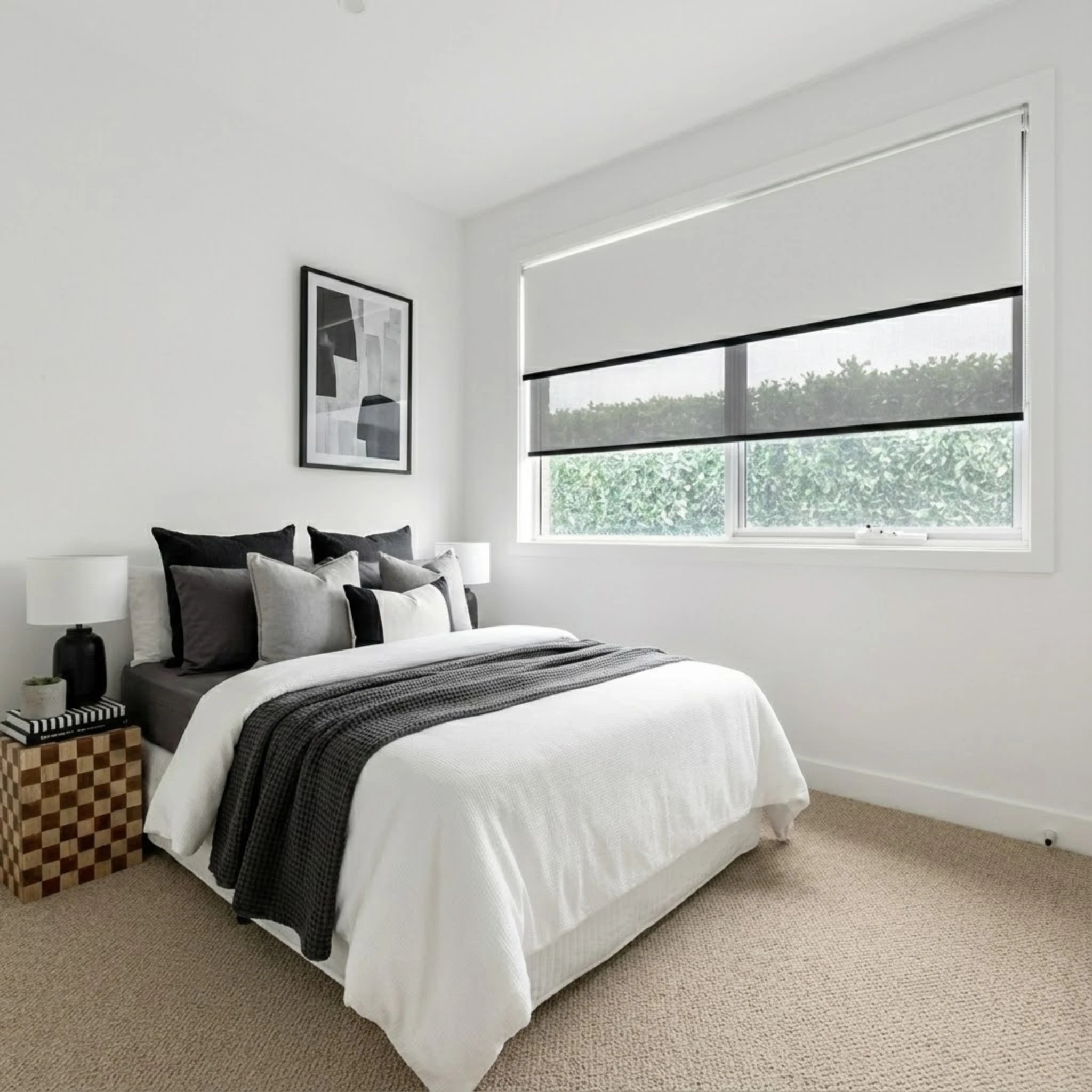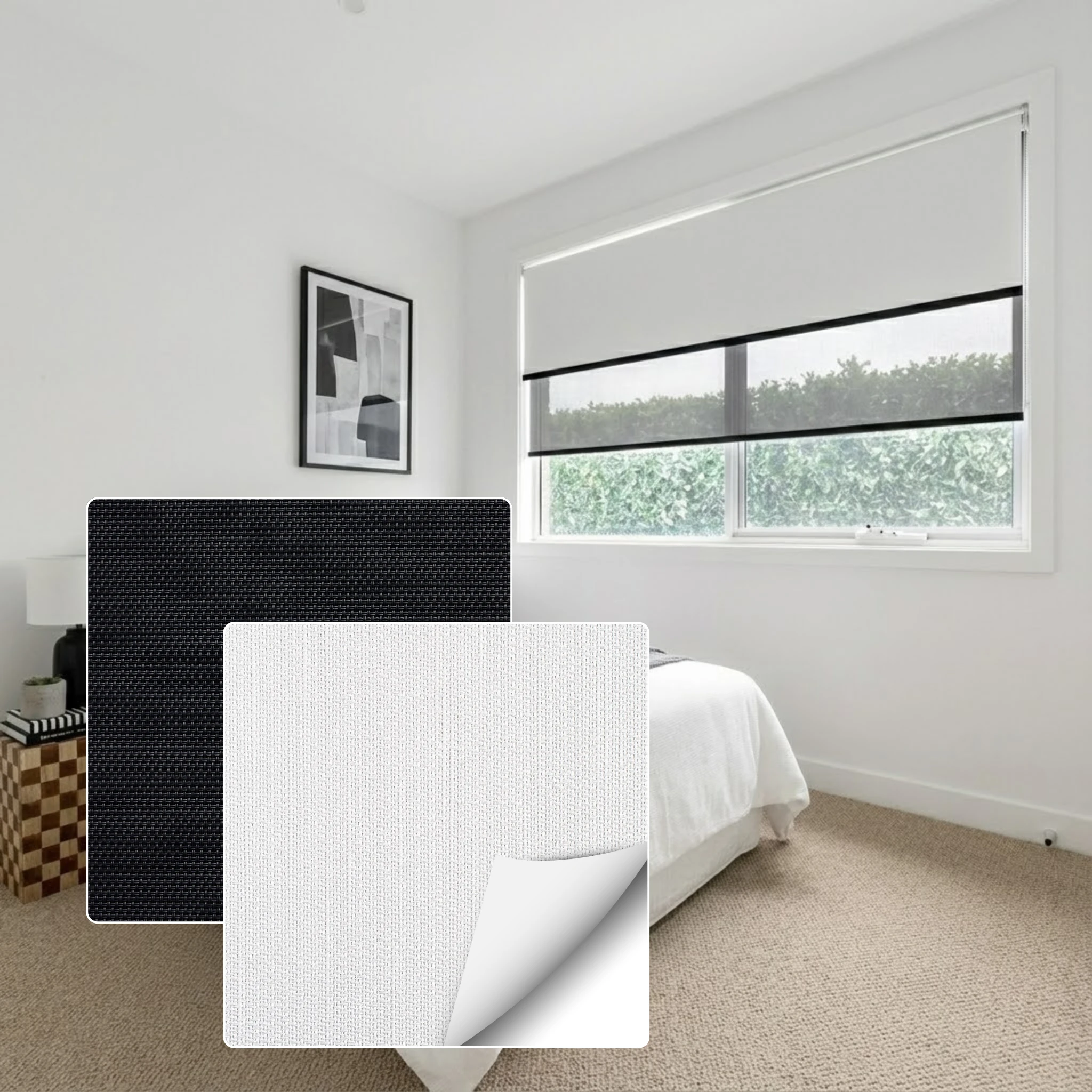 Linesque Blanco Blockout + Aventus Charcoal Sunscreen Double Roller Blind