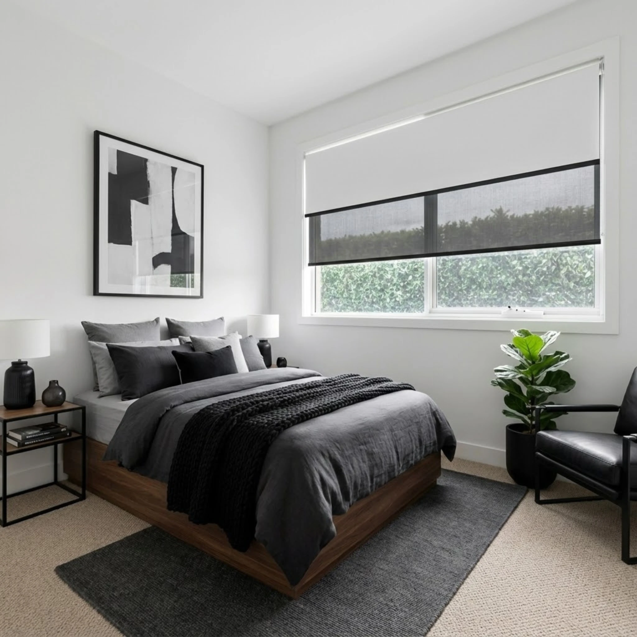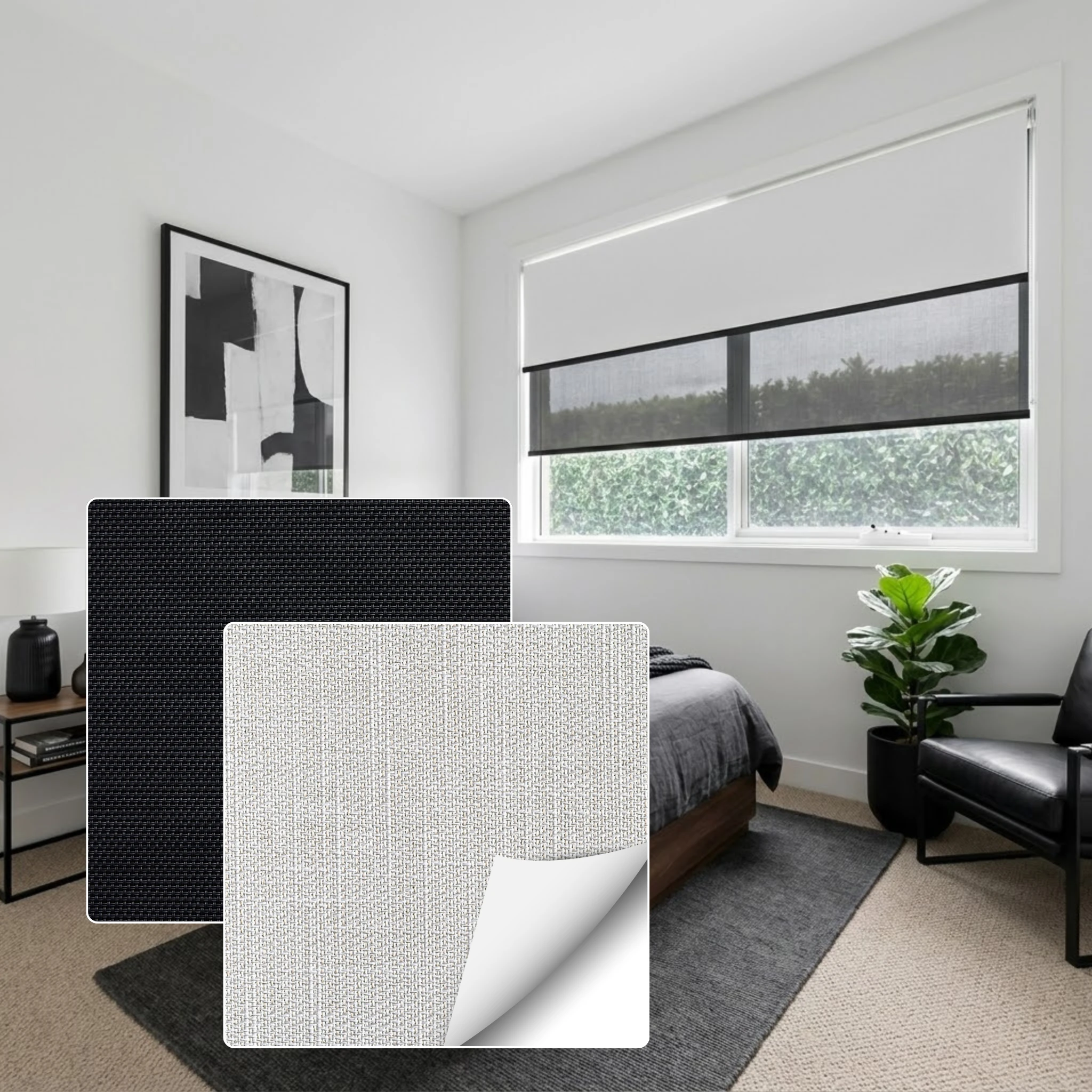 Linesque Dove Blockout + Aventus Charcoal Sunscreen Double Roller Blind