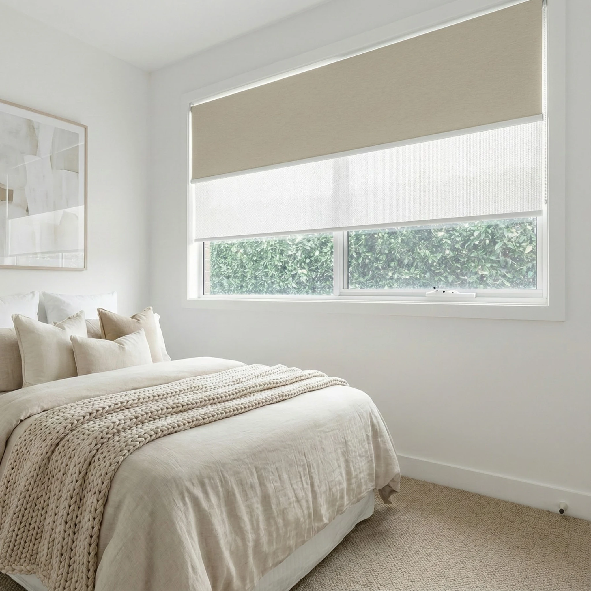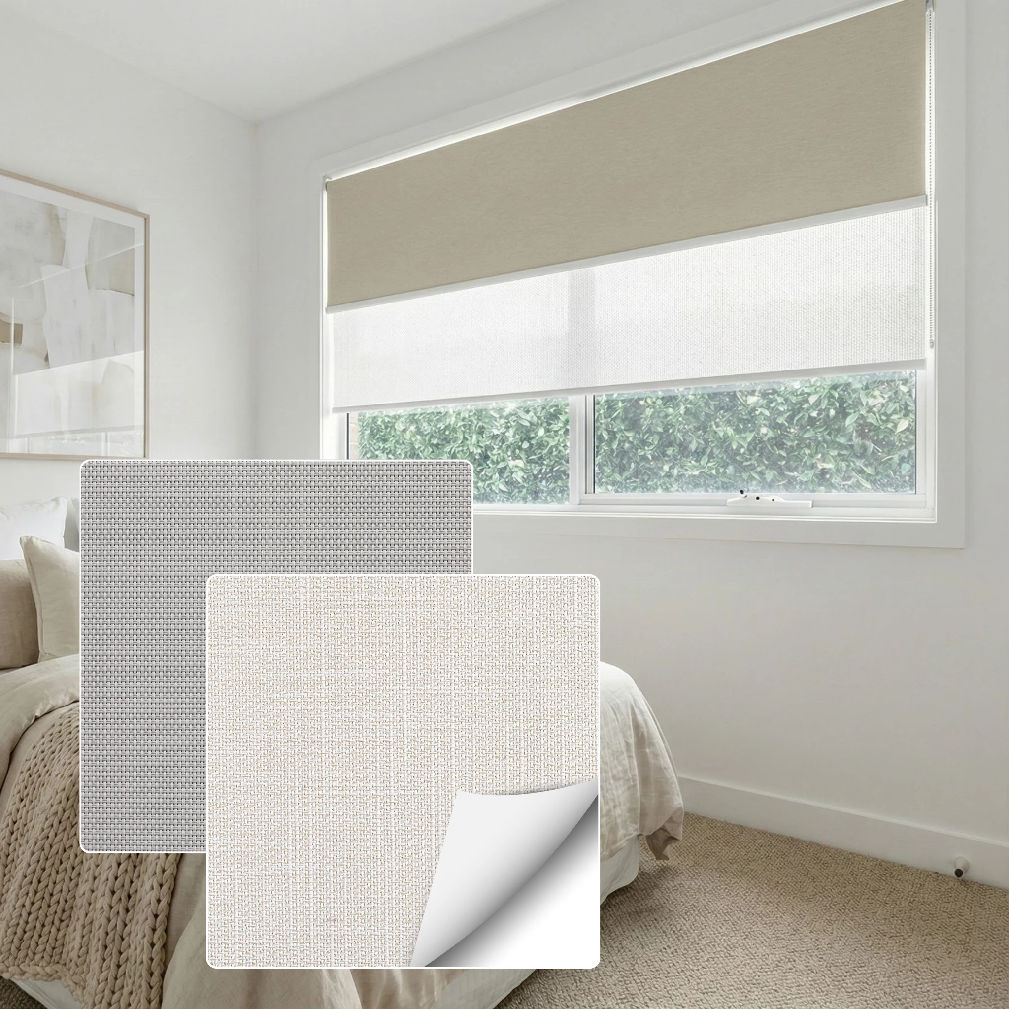 Linesque Soba Blockout + Aventus White Stone Sunscreen Double Roller Blind
