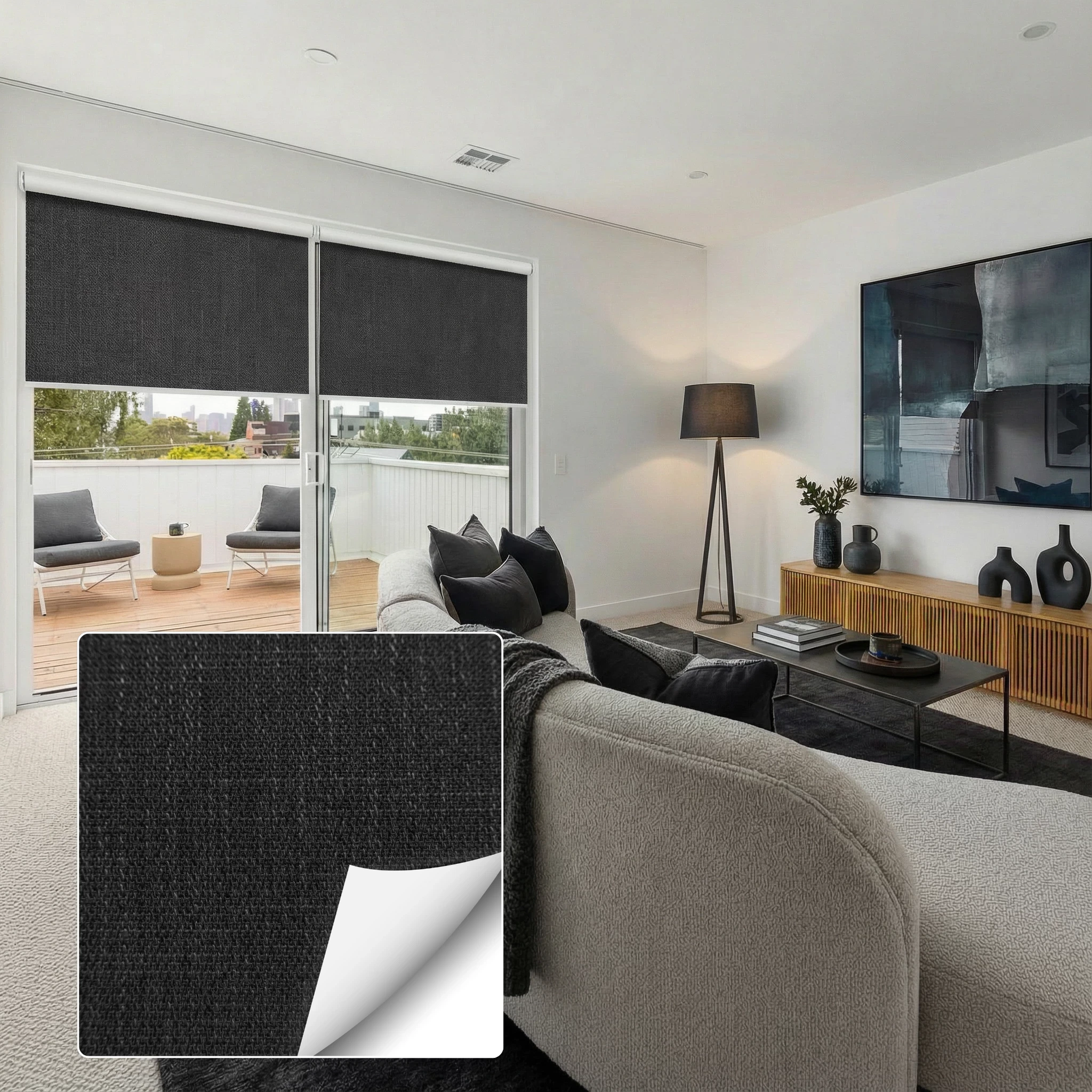 Nishi Charcoal Blockout Linked Roller Blind