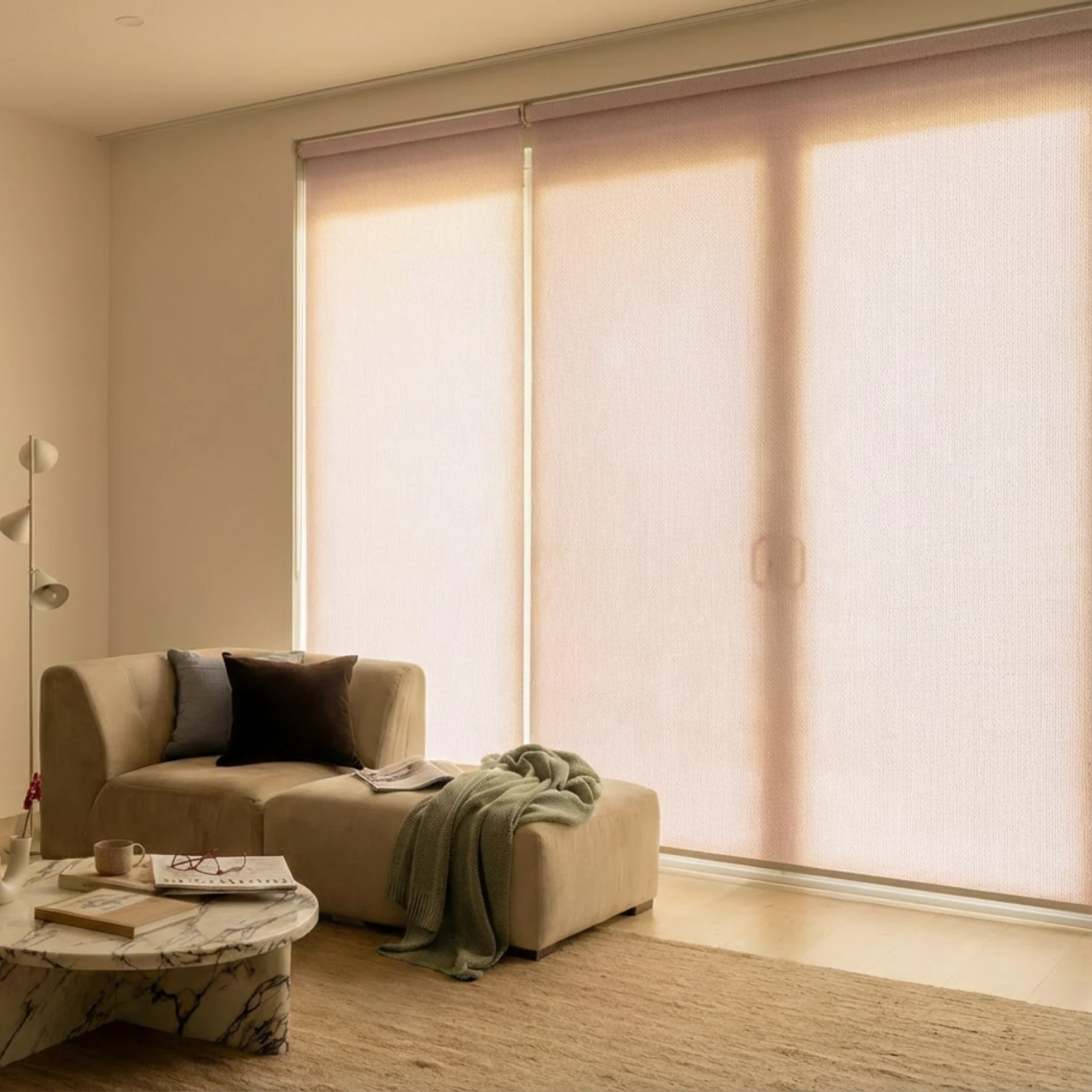 "We have sunscreen one screen fabric roller blinds with motorisation (remote) Firstly, we ordered free samples of the fa...
