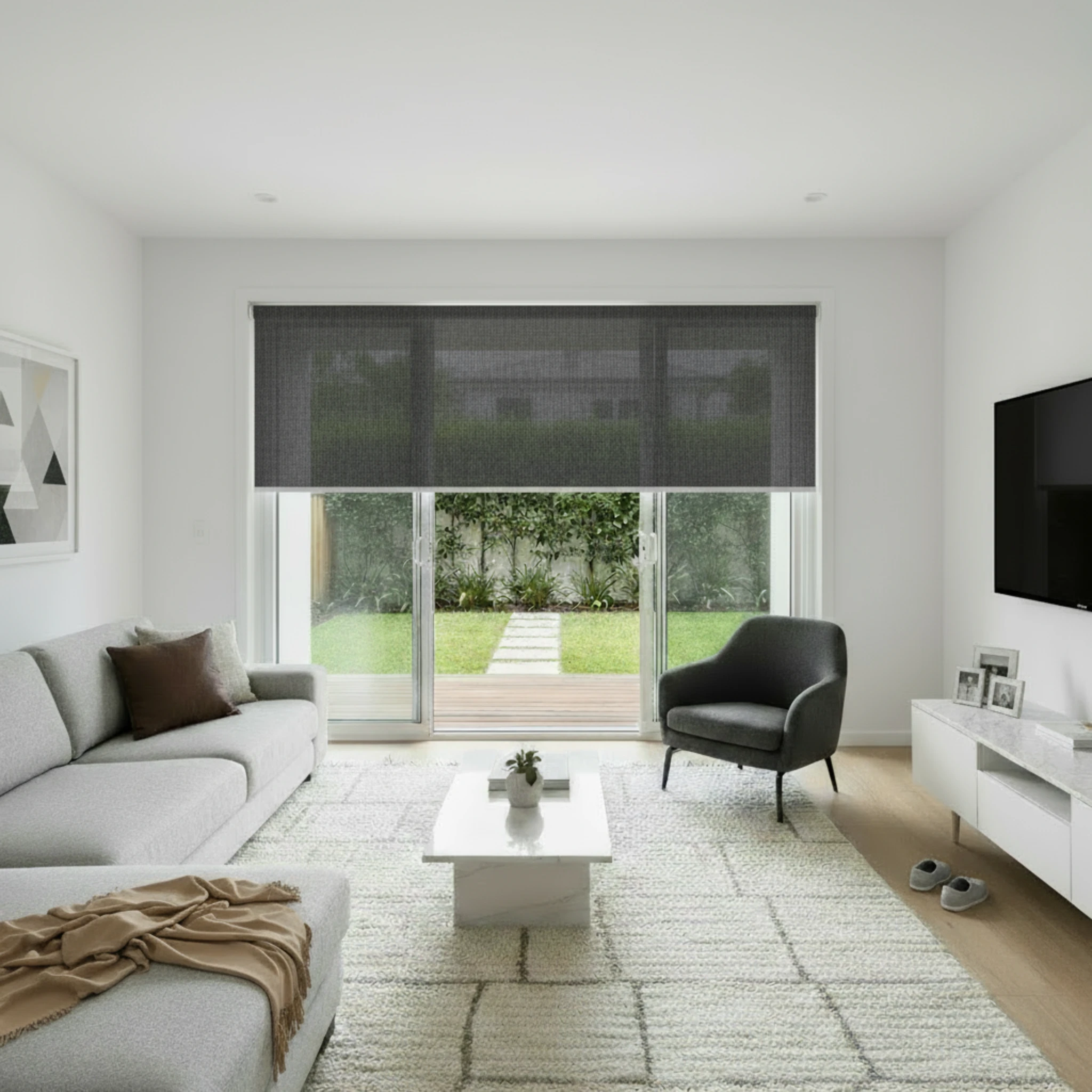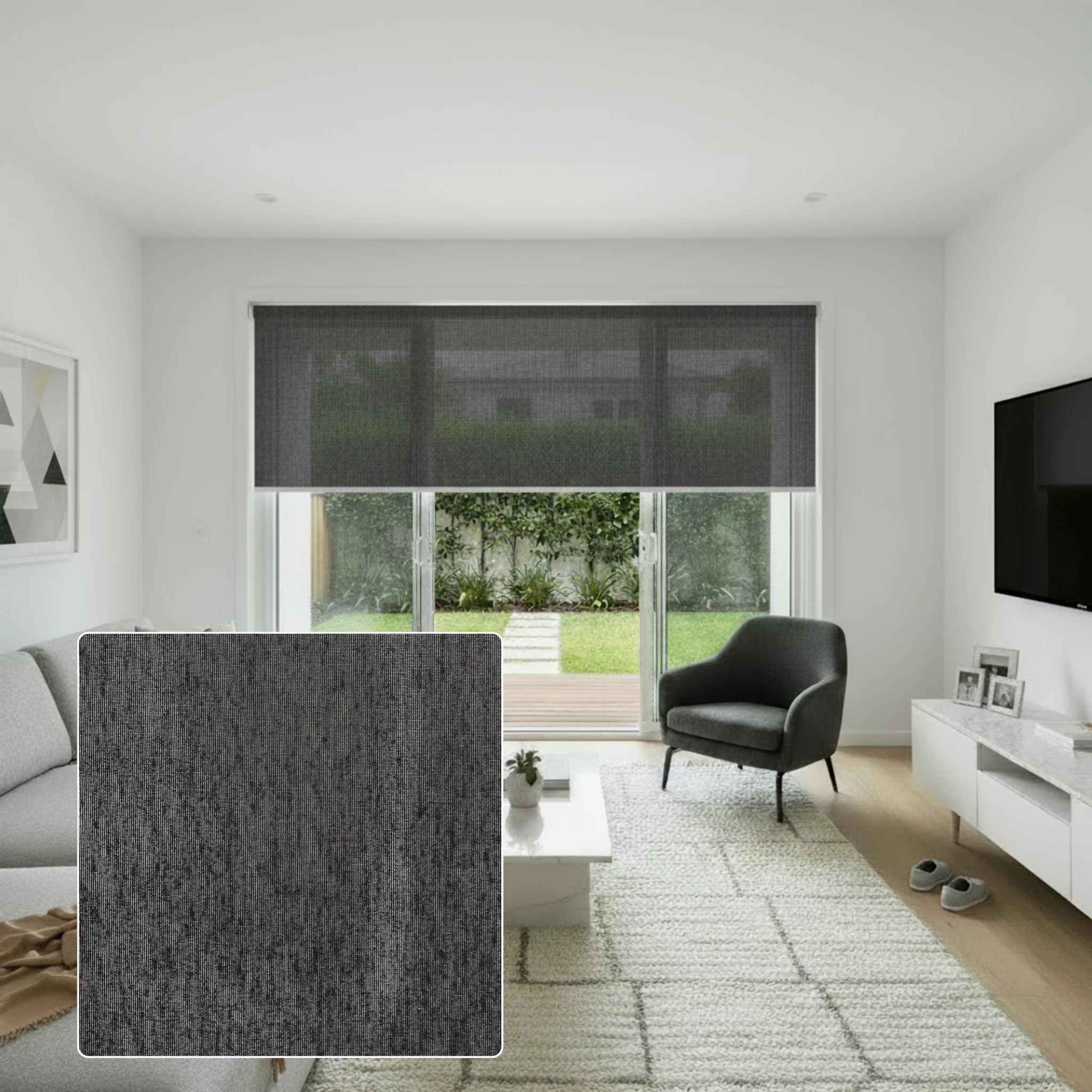 SB Woolamai Onyx Sunscreen Motorised Roller Blind