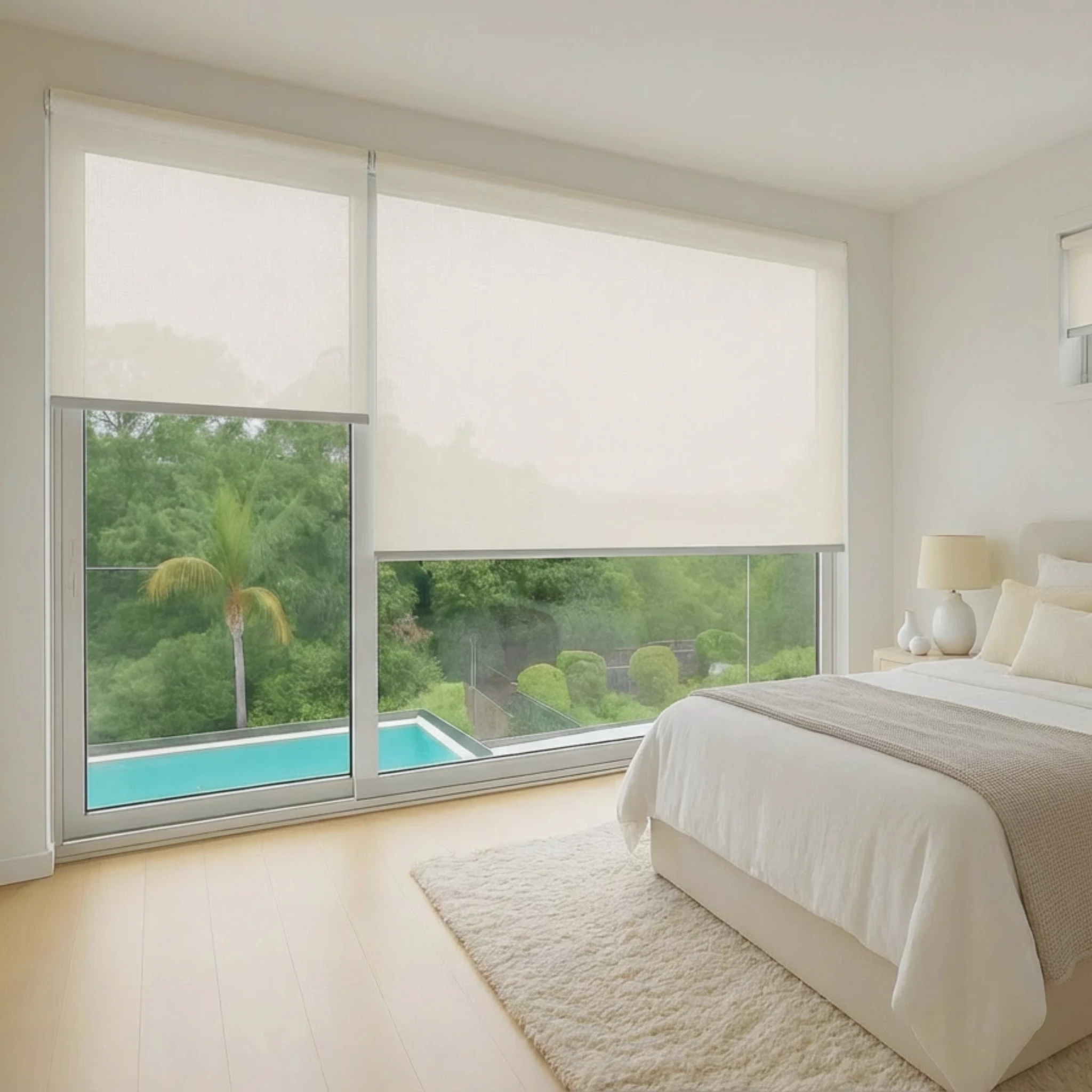 "We have sunscreen one screen fabric roller blinds with motorisation (remote) Firstly, we ordered free samples of the fa...