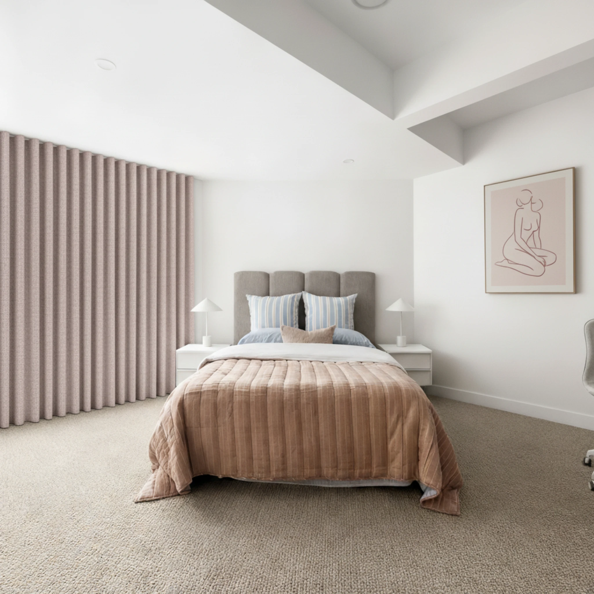 The Soleil Blush Blockout Curtain works beautifully in bedrooms, living rooms and media rooms. Its soft neutral tone complements a wide range of interior styles, from modern and contemporary to relaxed and classic spaces.