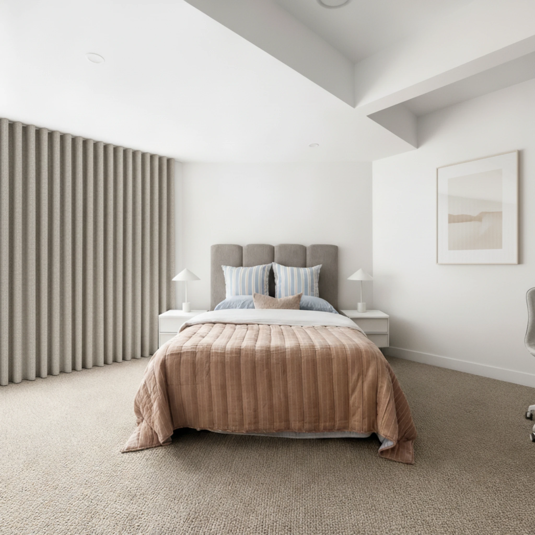 All our blockout curtains are made with a modern S-Fold (wave-fold) heading. This creates a smooth, continuous wave from top to bottom, delivering a clean, contemporary finish that suits any interior style.