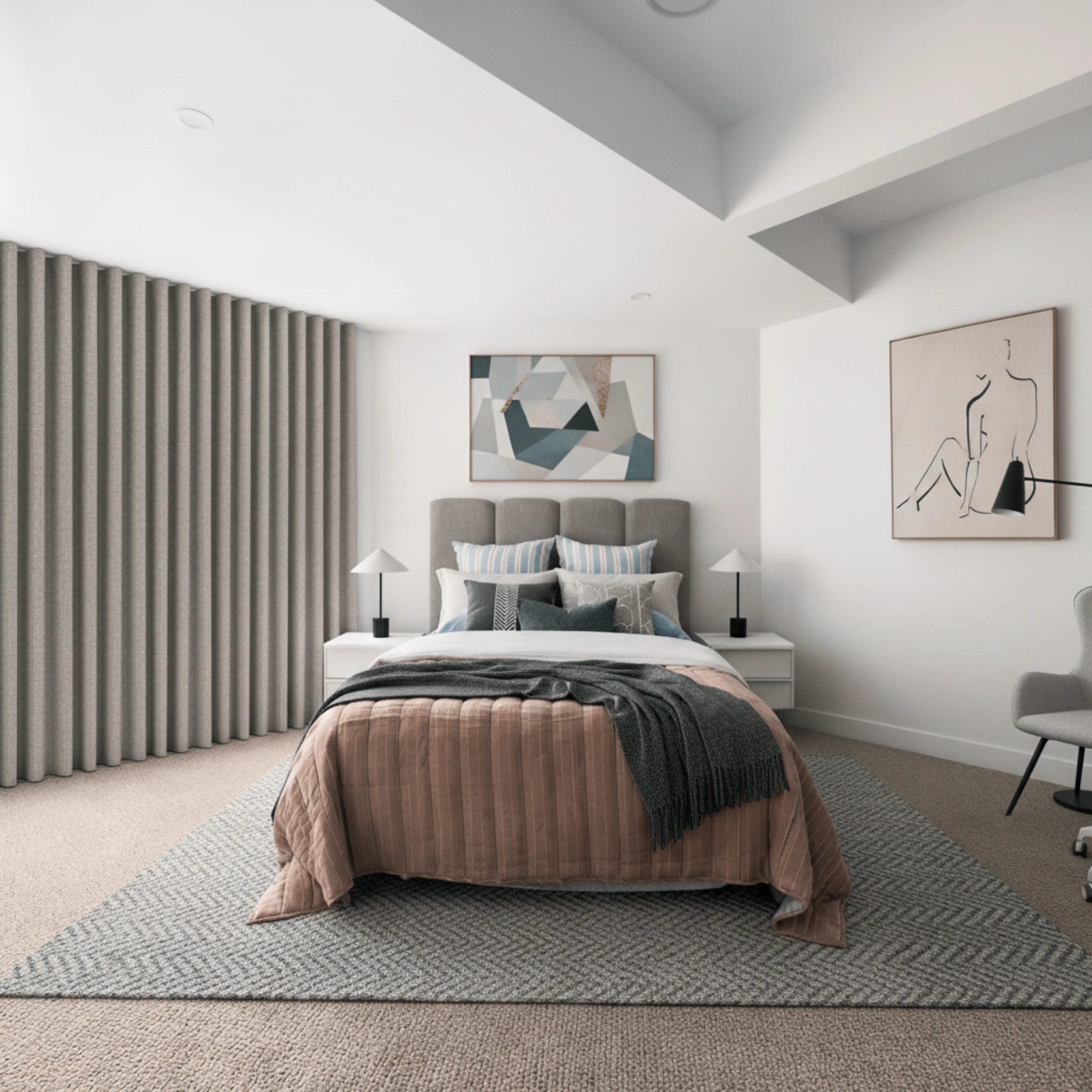 The Soleil Cement Blockout Curtain works beautifully in bedrooms, living rooms and media rooms. Its soft neutral tone complements a wide range of interior styles, from modern and contemporary to relaxed and classic spaces.