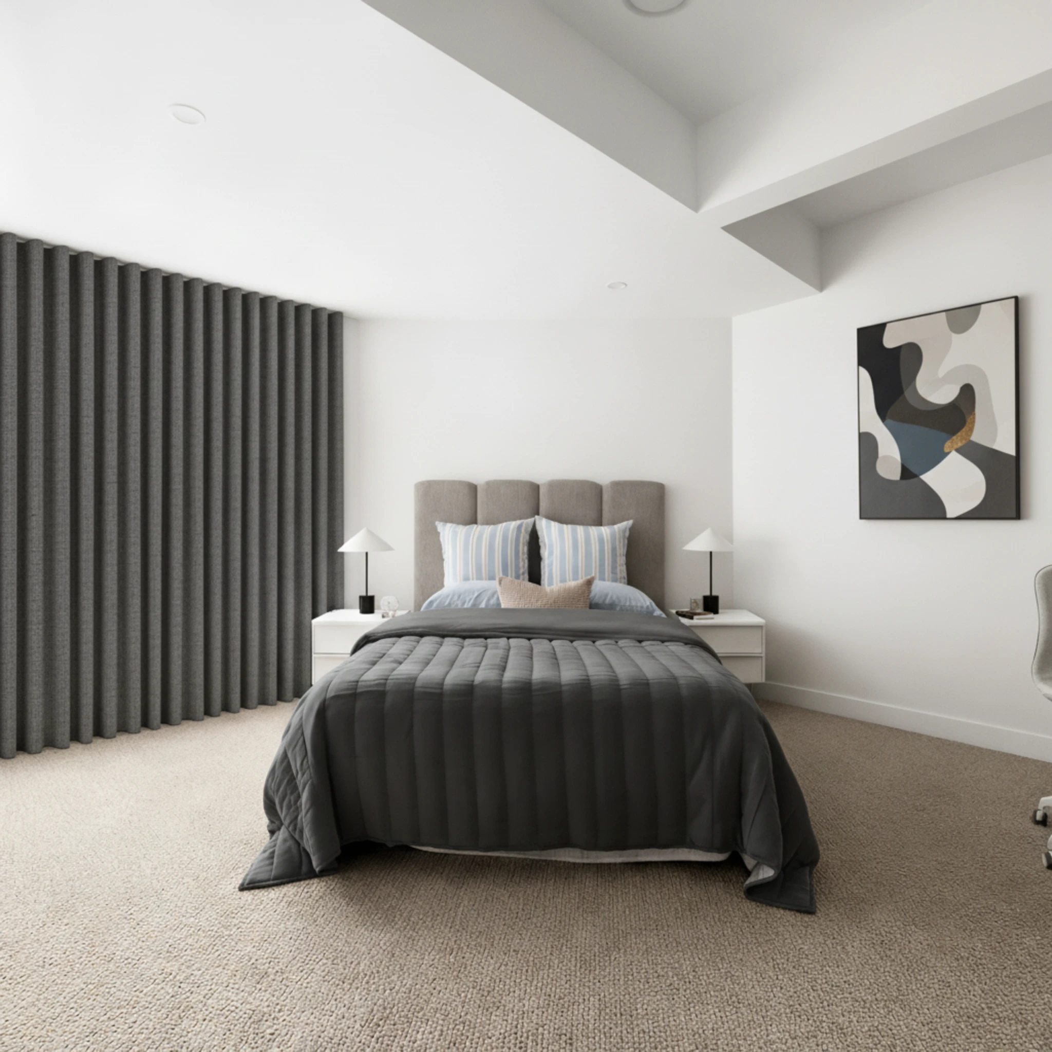 The Soleil Graphite Blockout Curtain works beautifully in bedrooms, living rooms and media rooms. Its soft neutral tone complements a wide range of interior styles, from modern and contemporary to relaxed and classic spaces.
