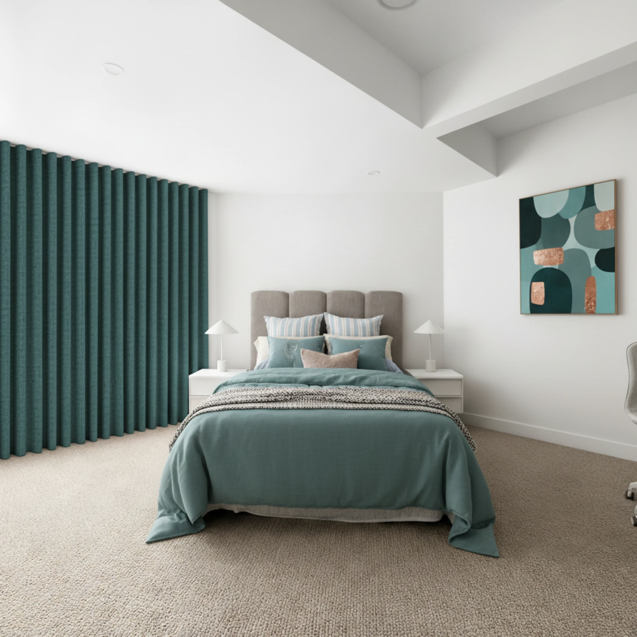 The Soleil Mint Blockout Curtain works beautifully in bedrooms, living rooms and media rooms. Its soft neutral tone complements a wide range of interior styles, from modern and contemporary to relaxed and classic spaces.