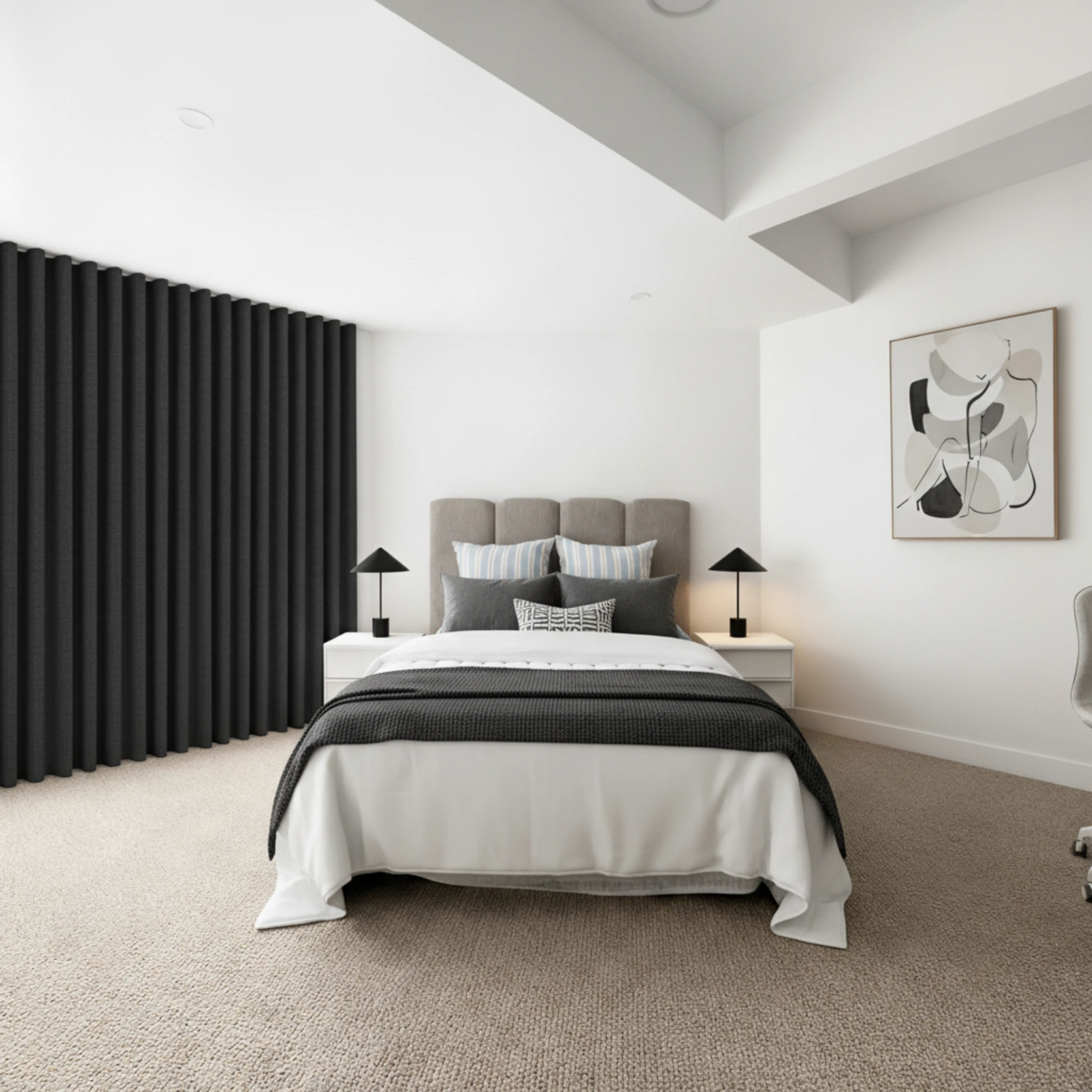 The Soleil Phantom Blockout Curtain works beautifully in bedrooms, living rooms and media rooms. Its soft neutral tone complements a wide range of interior styles, from modern and contemporary to relaxed and classic spaces.