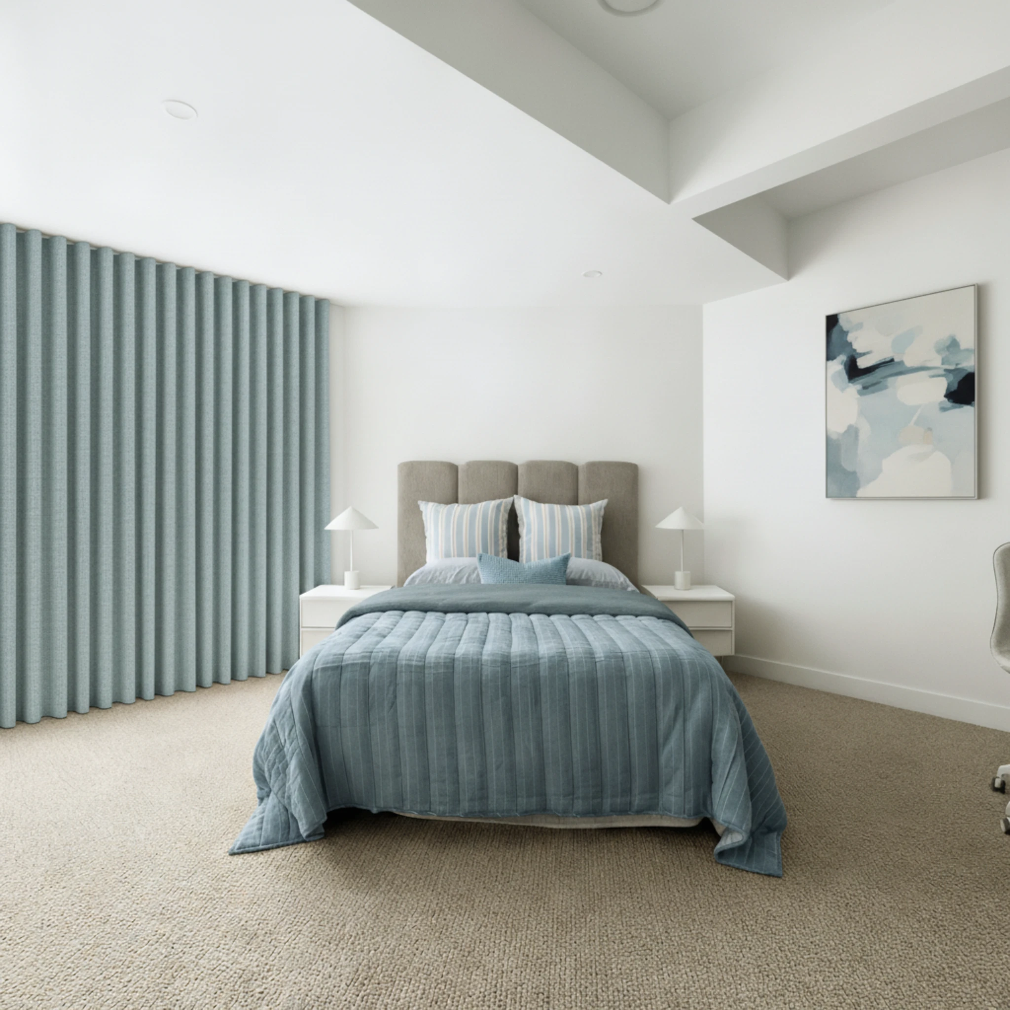 The Soleil Spray Blockout Curtain works beautifully in bedrooms, living rooms and media rooms. Its soft neutral tone complements a wide range of interior styles, from modern and contemporary to relaxed and classic spaces.